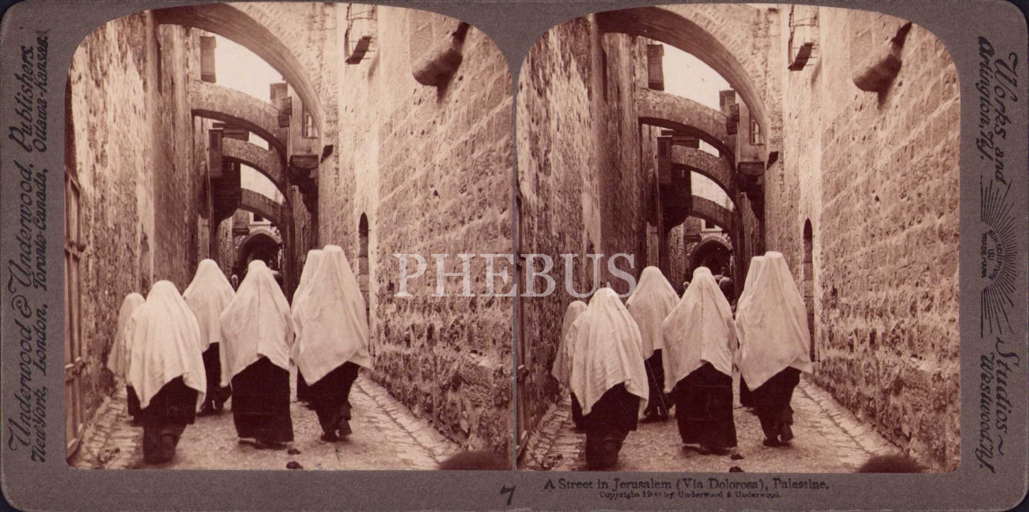 Osmanlı dönemi stereoview, Filistin, Kudüs'te bir sokak, 17x8 cöm