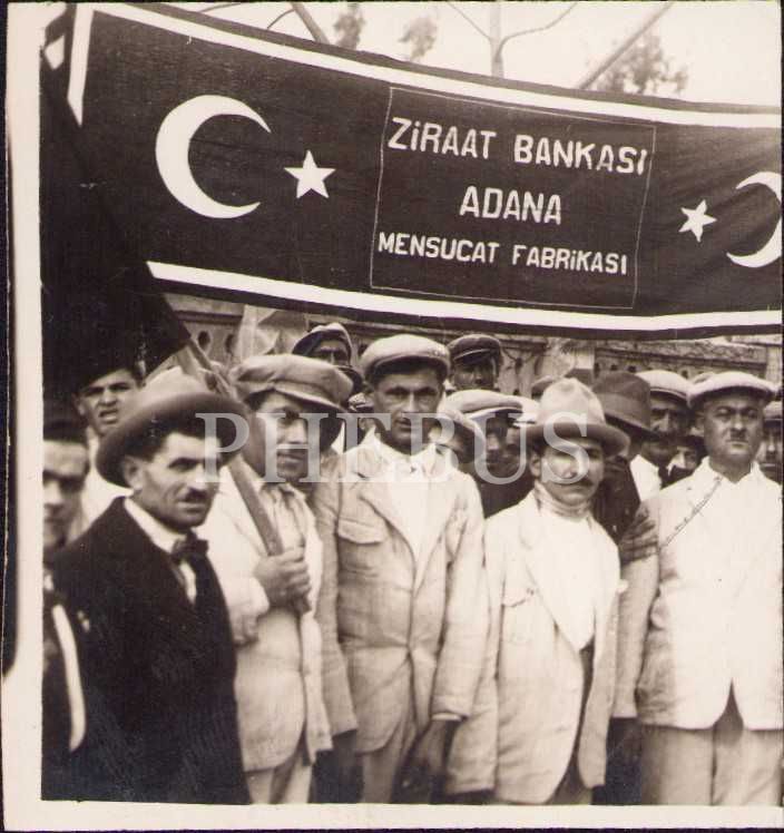 Ziraat Bankası Adana Mensucat Fabrikası pankartlı hatıra, kesilmiş, 5x6 cm