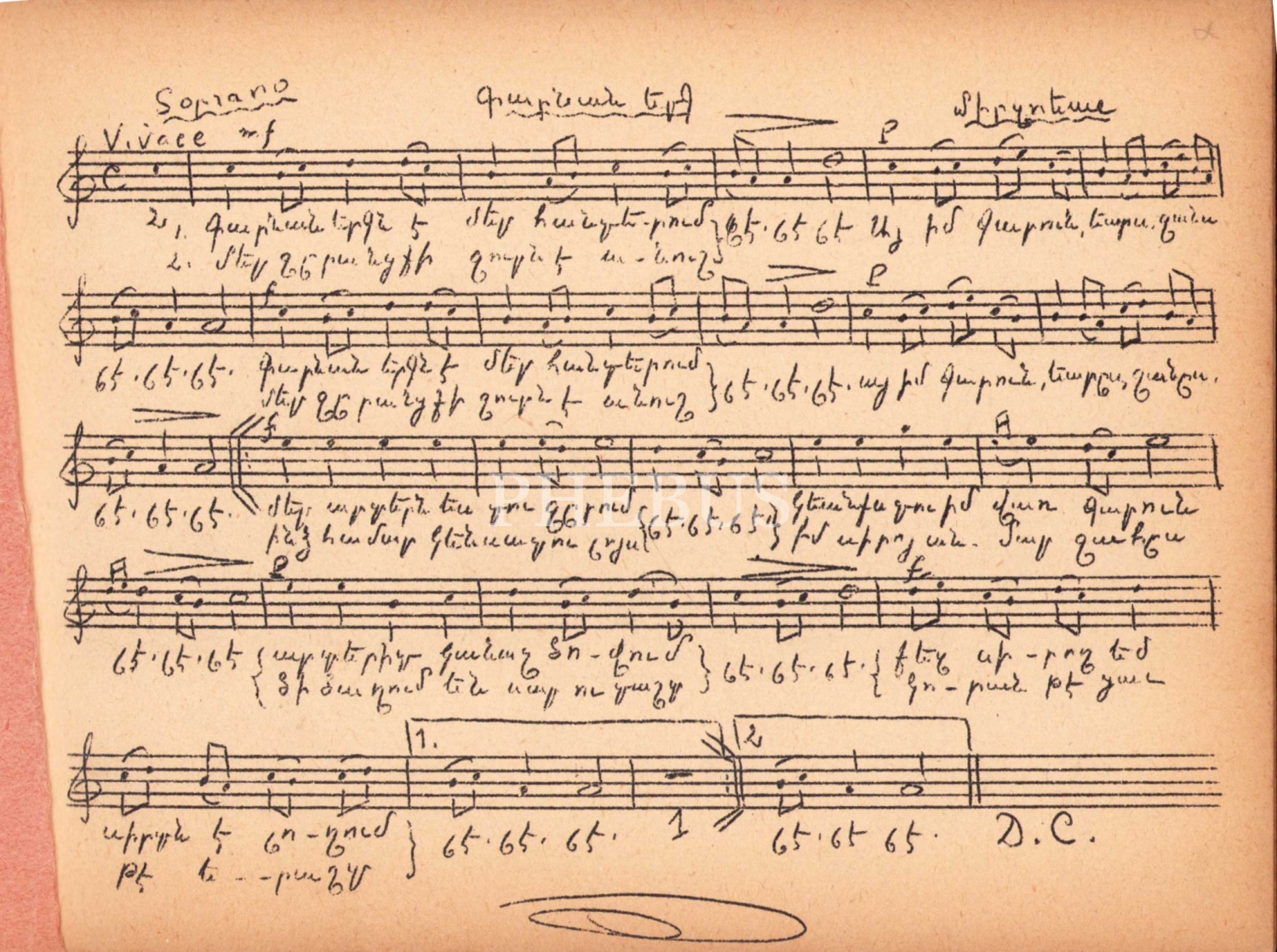 Soprano kapaklı Ermenice nota defteri, 21 sayfa, 20x14 cm