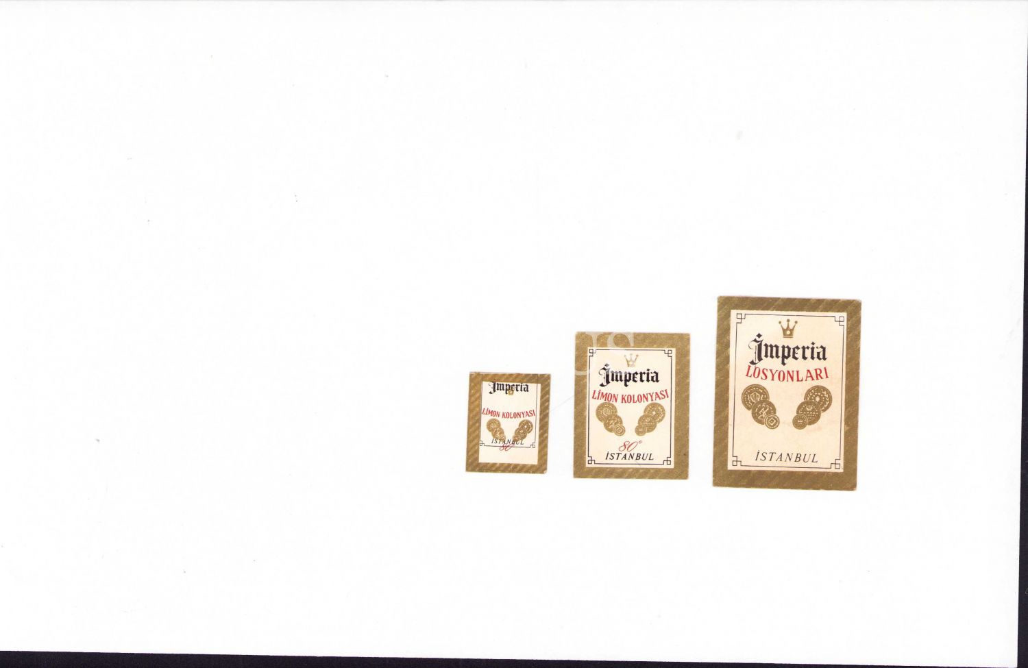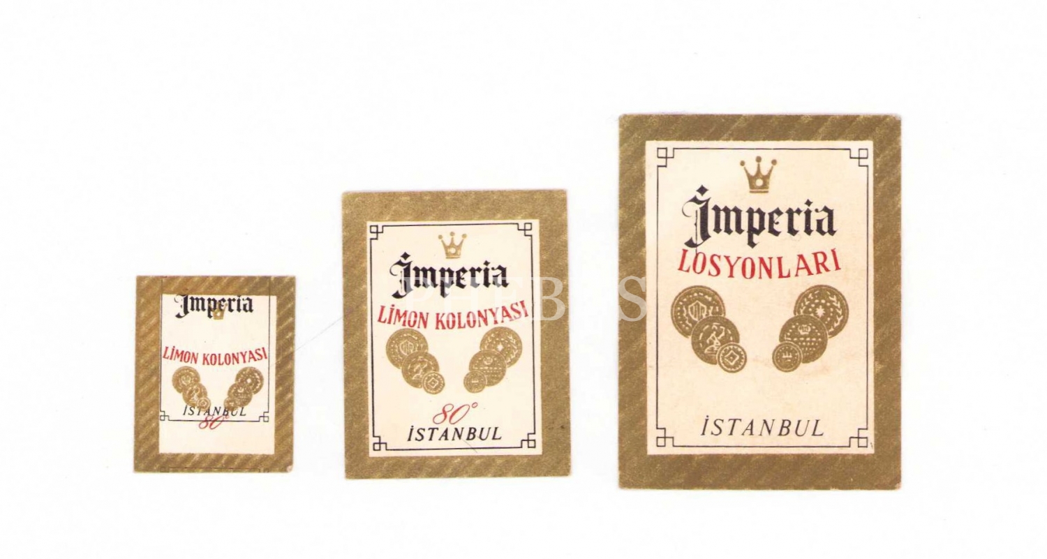 167 adet İmperia Losyonları ve Limon Kolonyası etiket, ölçüler: 4x5 cm, 3x4 cm, 2x3 cm
