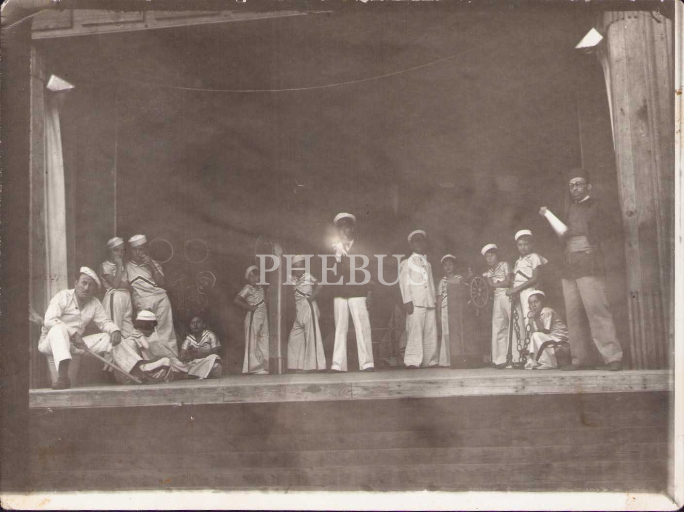 Denizci kıyafetli tiyatro öğrencileri, 11x8 cm