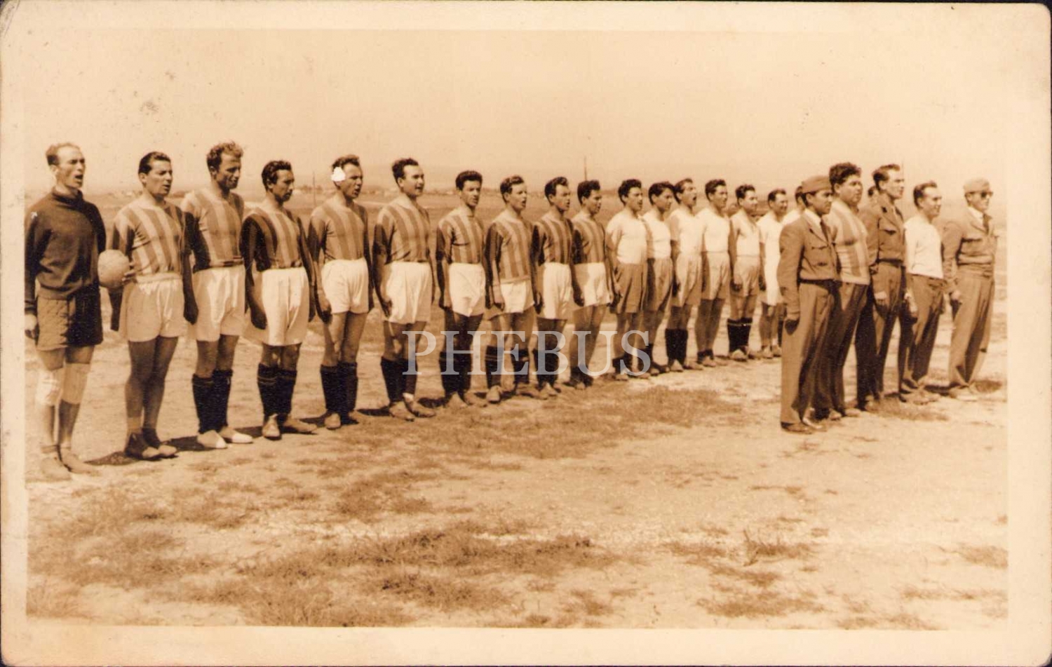 Erken dönem futbol takımı deplasman öncesi marş okurken