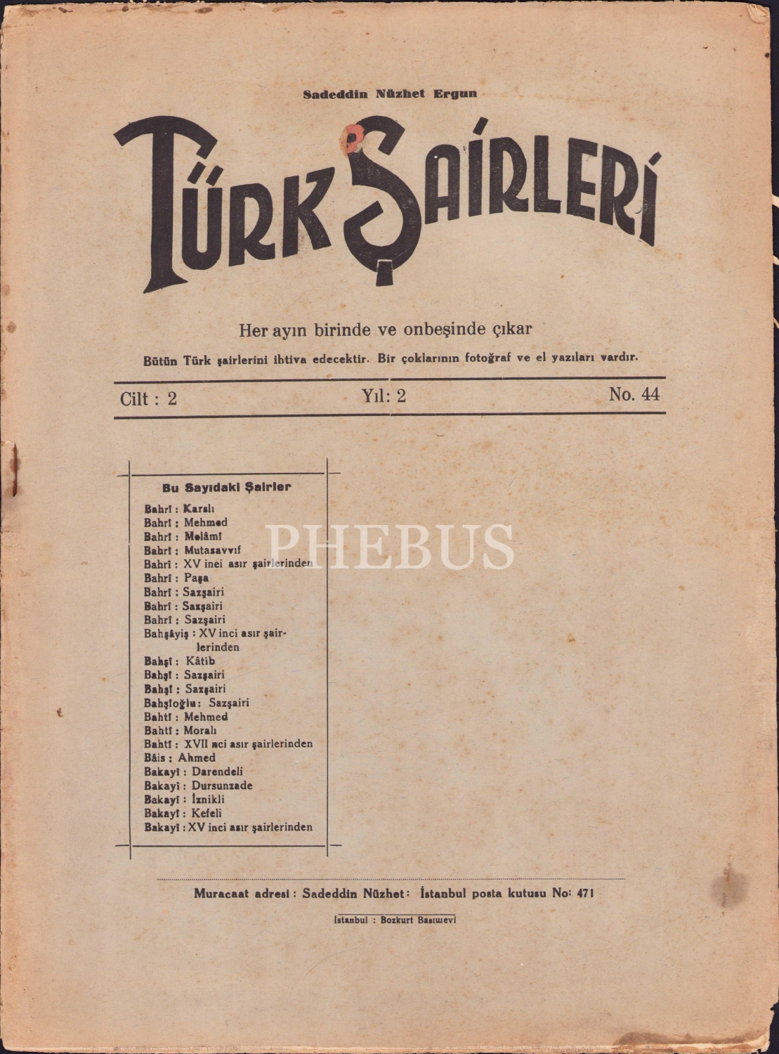 Türk Şairleri, Sadeddin Nüzhet Ergun, sayfa kenarları haliyle, 16 sayfa, 24x34 cm
