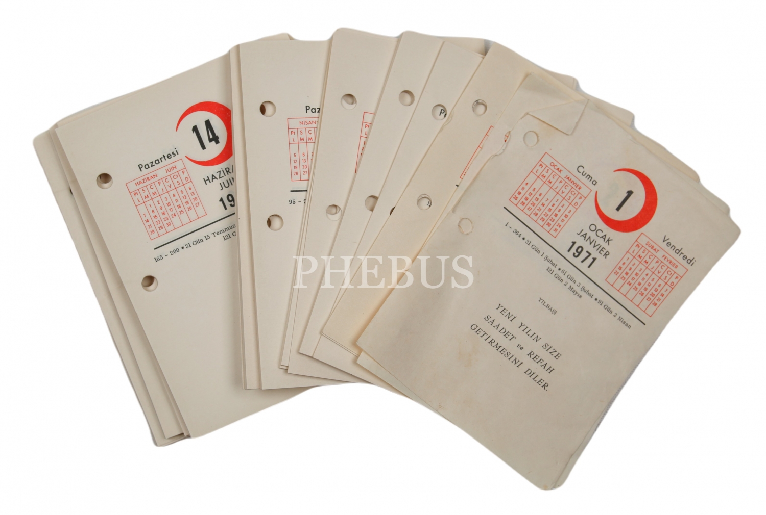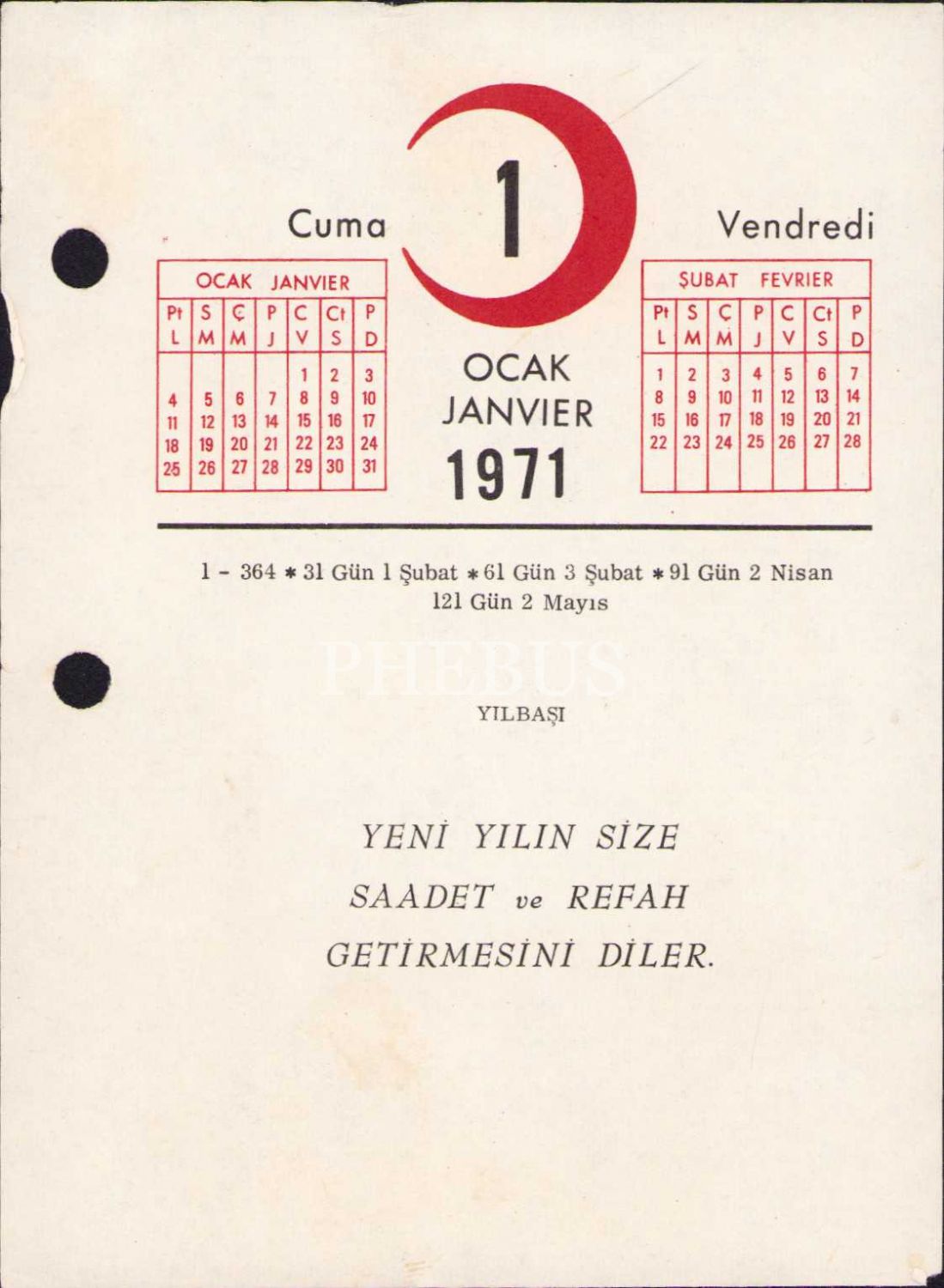 Türkiye Kızılay Derneği 1971 takvimi, 365 gün tam, 9x12 cm