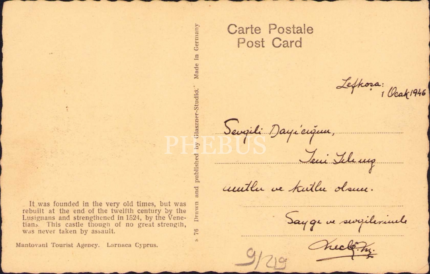Osmanlı dönemi Girne Kalesi, Kıbrıs, Editör: Mantovani Tourist Agency, Larnaca Cyprus, arkası ithaflı