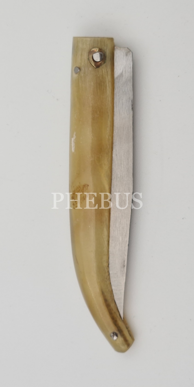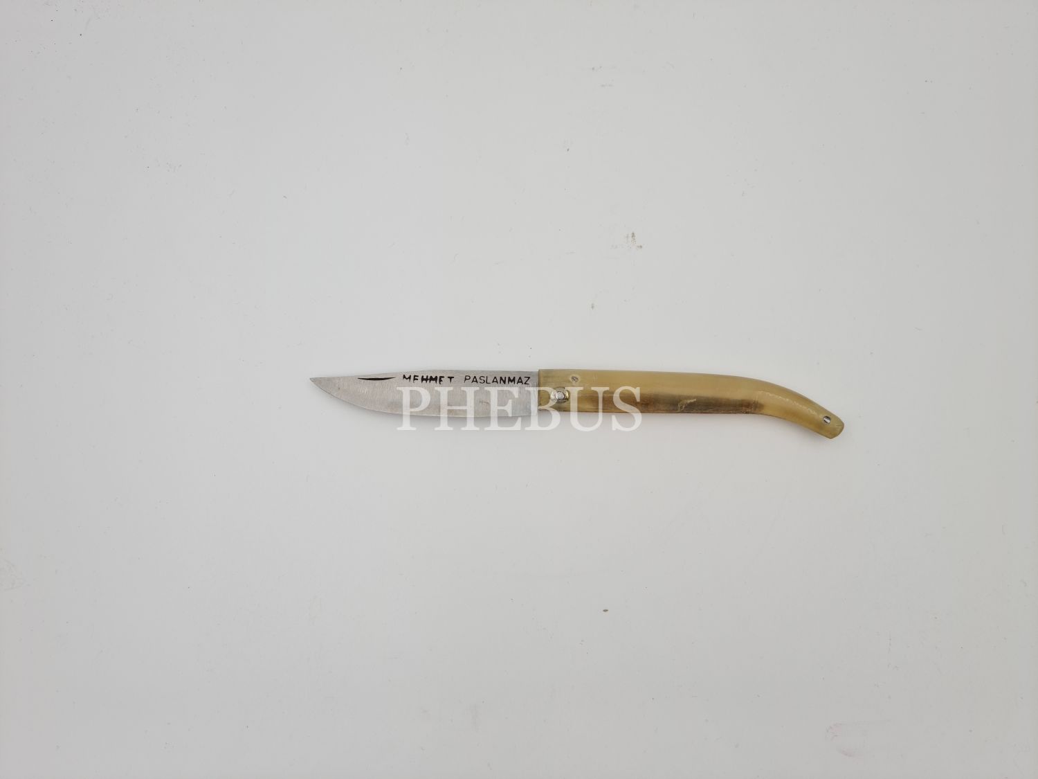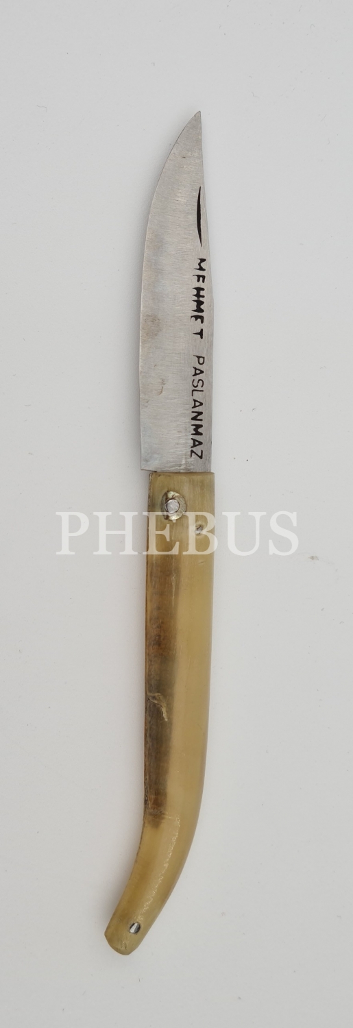 Mehmet Paslanmaz yazılı boynuz saplı çakı, 17 cm