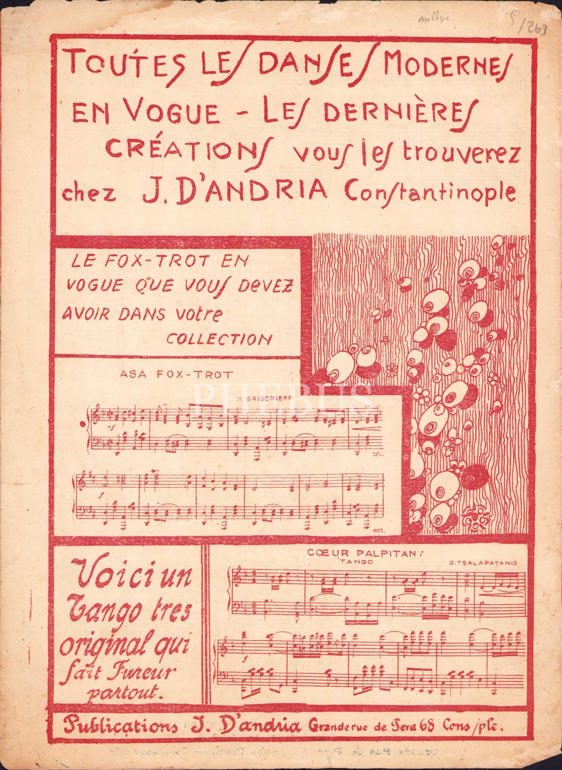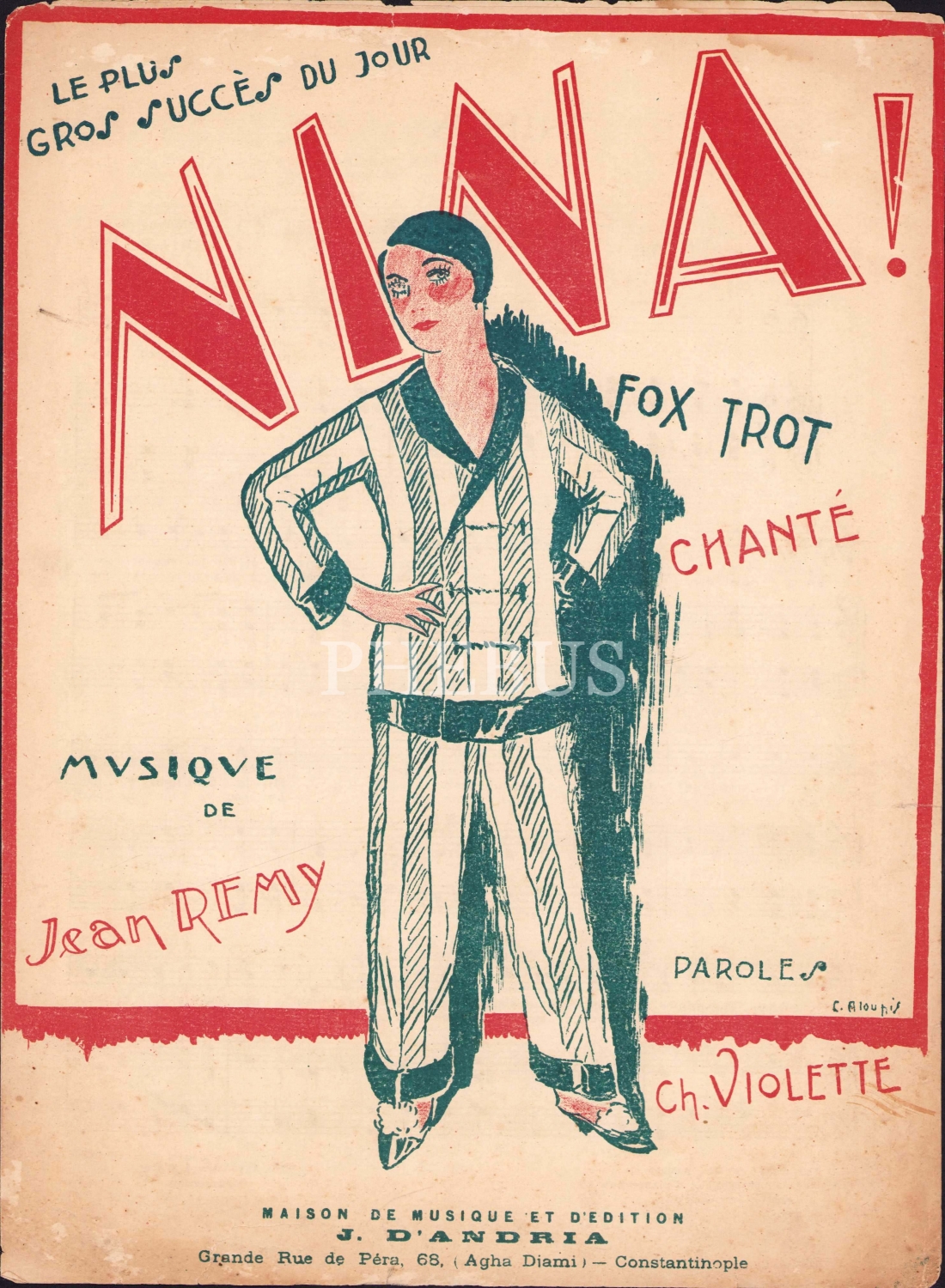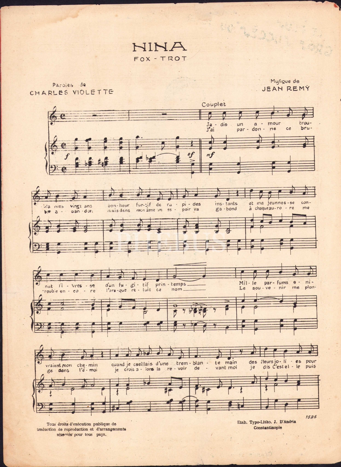 Fransızca nota, Nina, editör J. D'andria, Constantinople, sayfa kenarları haliyle, 4 sayfa, 23x33 cm