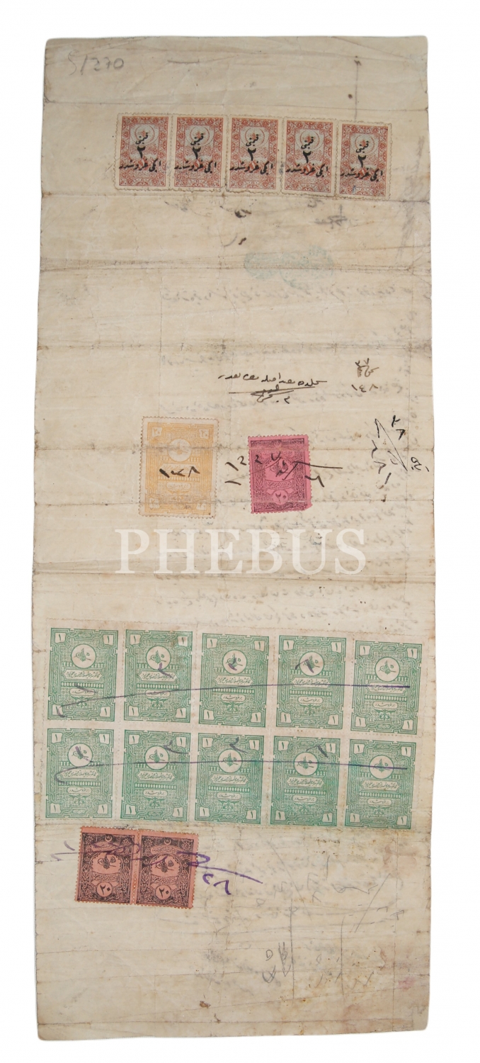 Beşiktaş Kaptan İbrahim Ağa mahallesi 1337 senesi vefat eden Mehmet ağaya ait hüccet kaydı, Osmanlıca, yıpranmış, 16x45 cm