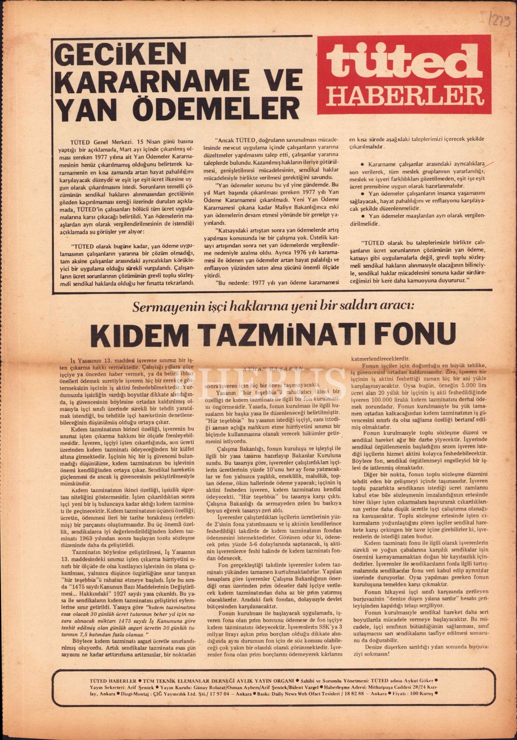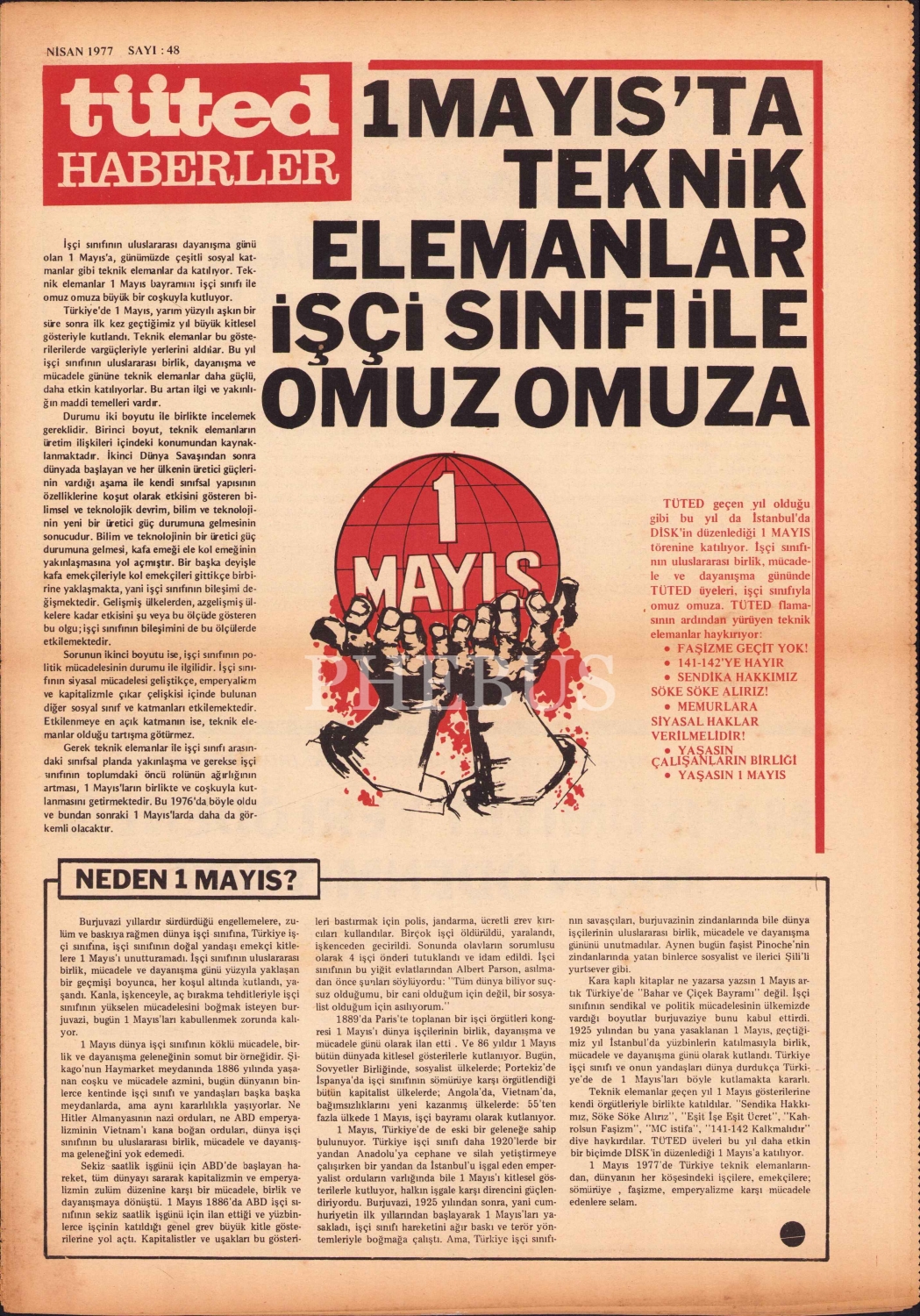 Tüted Haberler, Nisan 1977, " 1 Mayıs'ta Teknik Elemanlar İşçi Sınıfı İle Omuz Omuza", 8 sayfa, 29x39 cm