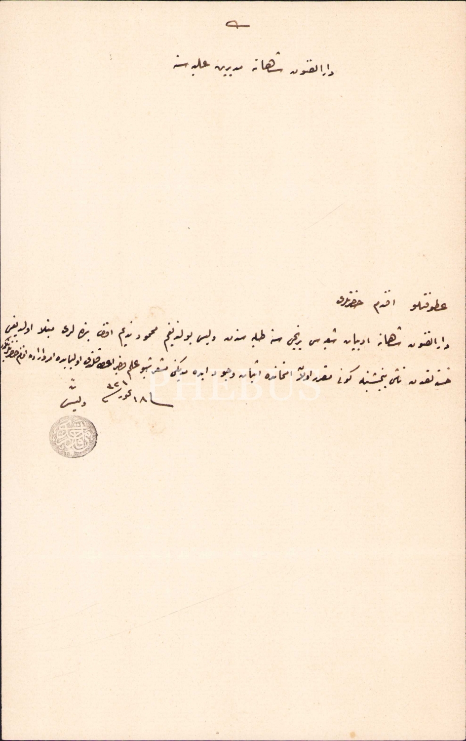 1321 tarihinde Darülfünun Şahane müdürlüğüne yazılmış edebiyat şubesi talebesine ait izin belgesi, Osmanlıca, 16x26 cm