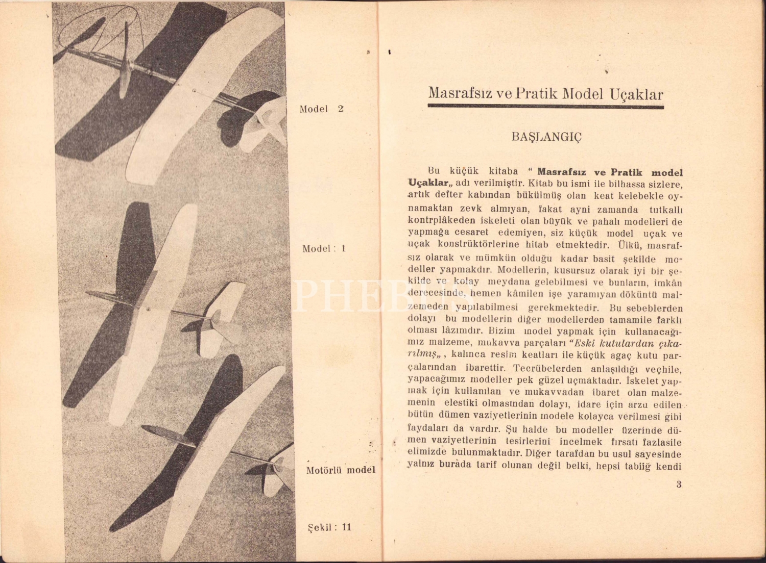 Masrafsız ve Pratik Model Uçaklar, Ulus Basımevi, Ankara, 1935, resimli, 120 sayfa, 14x20 cm