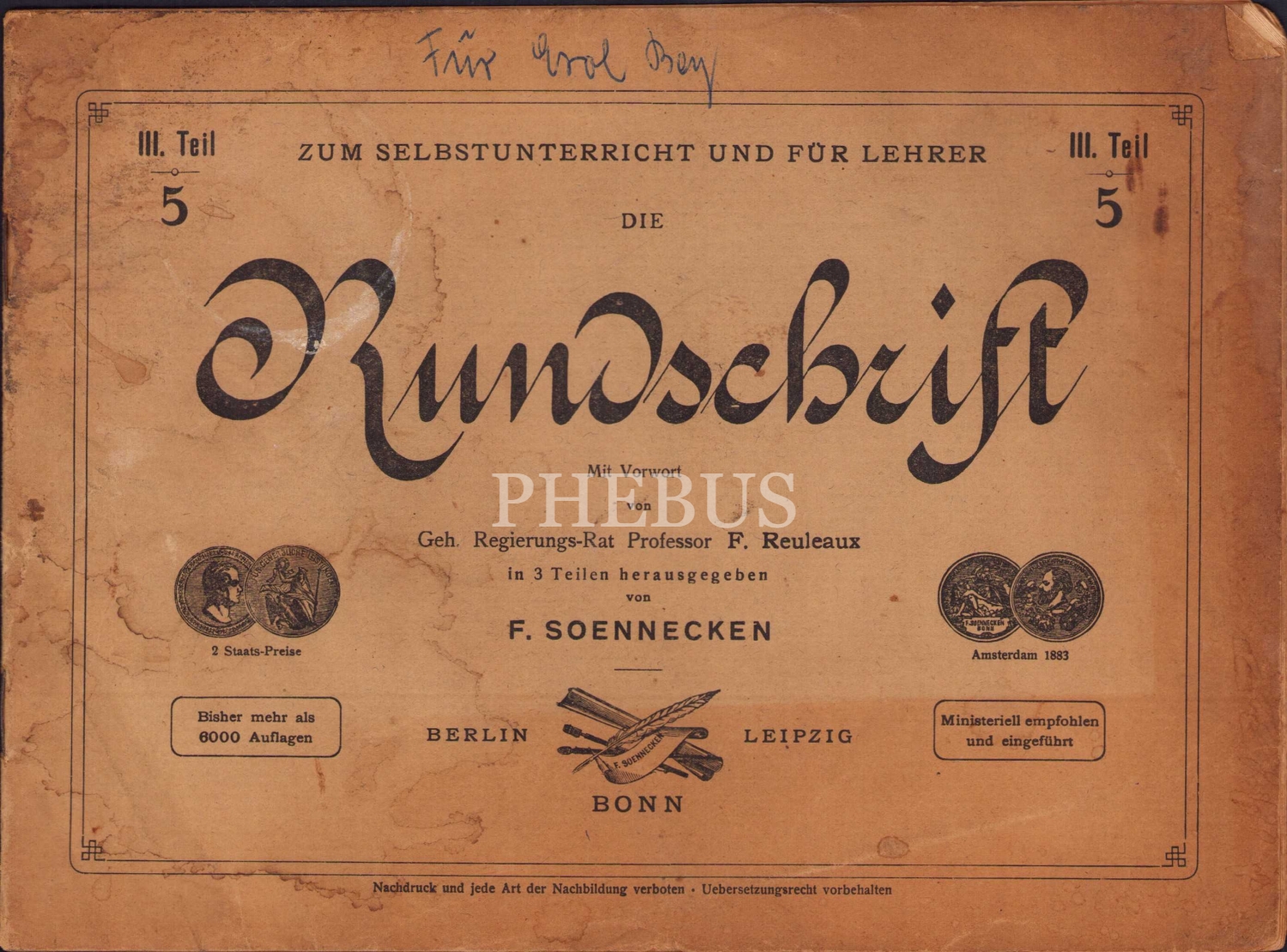 Reuleaux, F. (Vorwort) Schul-Ausgabe die Rundschrift mit Vorwort 5, F. Soennecken, Berlin, 17 sayfa, 20x14 cm