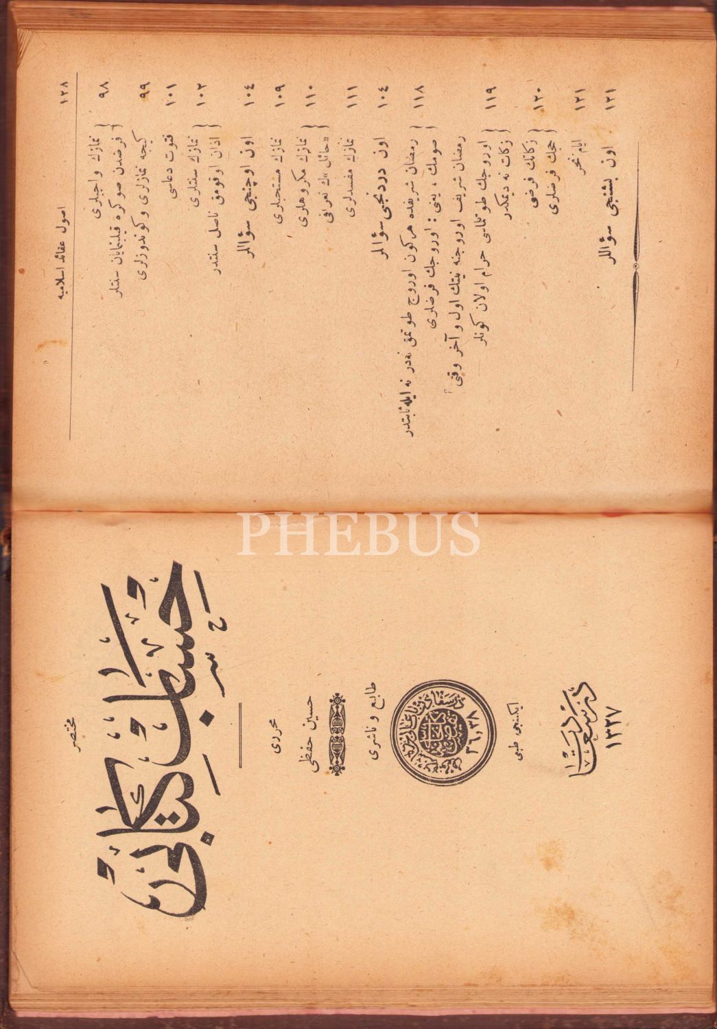 Tek ciltte iki kitap: 1- Usûl-i Akâid-i İslâmiyeden İlm-i Hâl-i Kebîr, Mahmud Mesud, 2-Hesap Kitabı, Hüseyin Hıfzı, Osmanlıca, İstanbul 1326, 128 sayfa, ÖZEGE; 22091, ÖZEGE; 14203