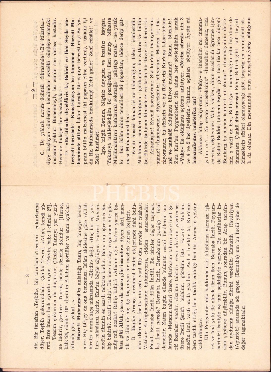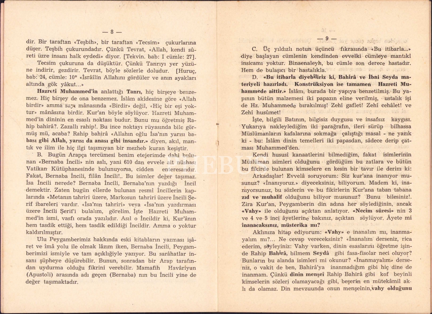 İslam Tarihinde Rahip Bahira Meselesi, İstanbul 1959, 32 sayfa, 20x13 cm