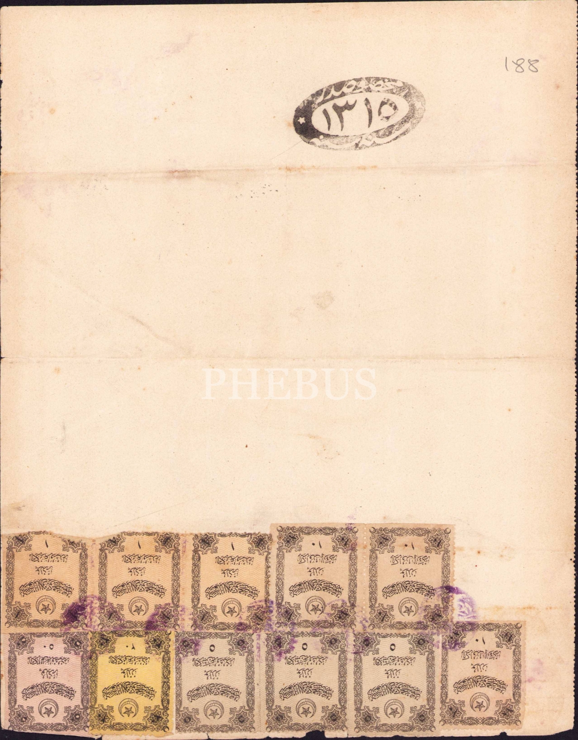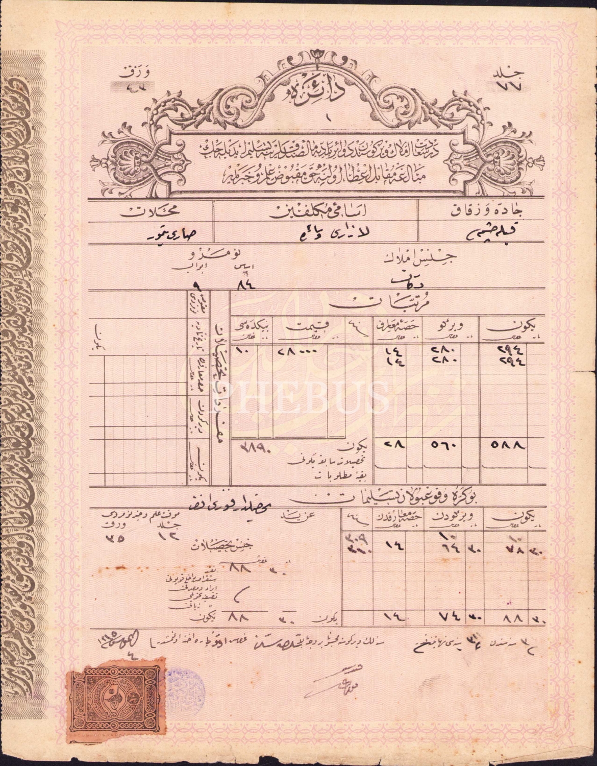 Dersaadet emlak vergi makbuzu ilmühaberi, Fatih Kıble Çeşme Caddesi, dükkan, pullu, Osmanlıca, 21x26 cm