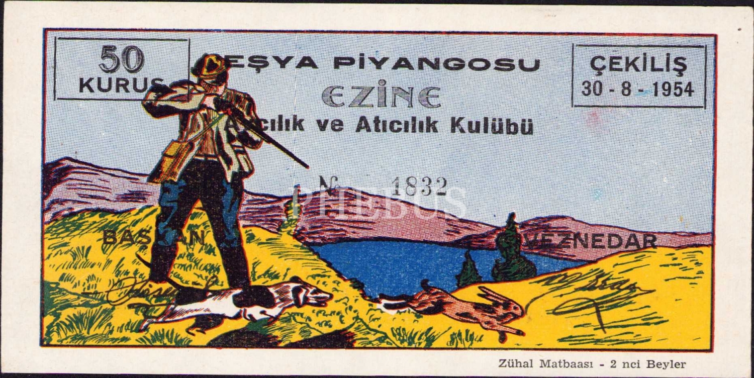 Ezine Avcılık ve Atıcılık Kulübü Eşya Piyangosu, 1954, 15x7 cm