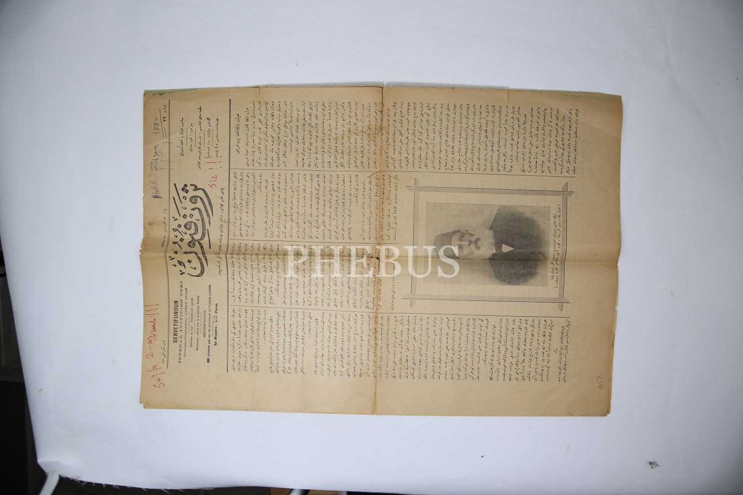 Osmanlıca Servetifünun gazetesi, sahibi Ahmed İhsan, 1324, resim "İlk Meclisi Mebusan Azası Ömer Şevki Paşa", haliyle, 4 sayfa, 34x56 cm