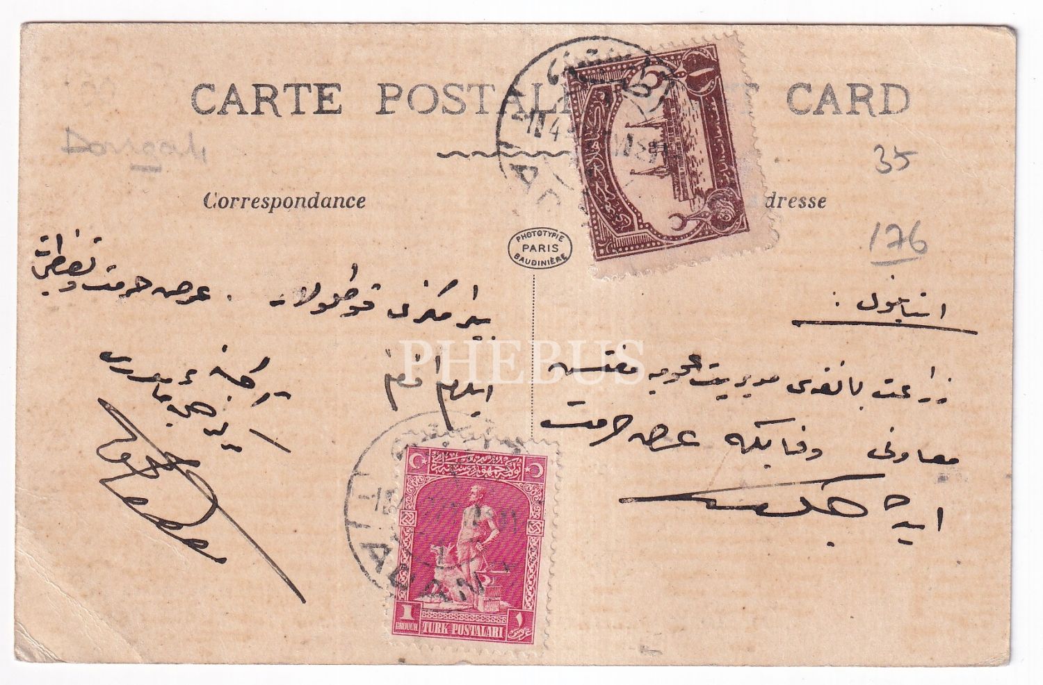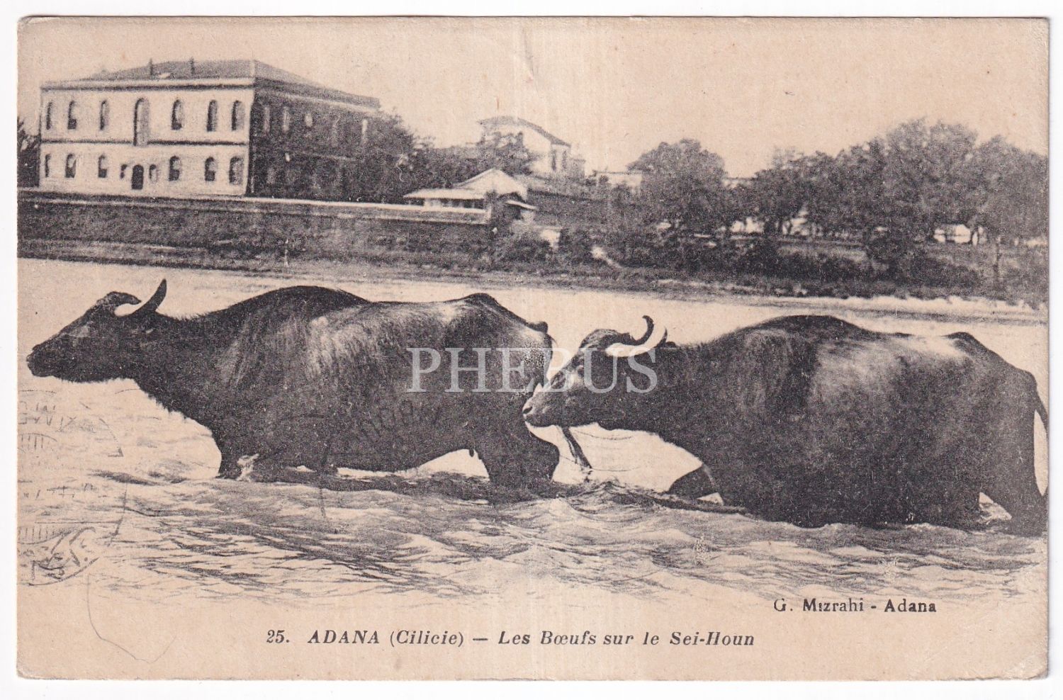 Osmanlı dönemi, Adana Seyhan Nehri'nde Mandalar, Editör G.Mizrahi, postadan geçmiş, arkası Osmanlıca yazılı