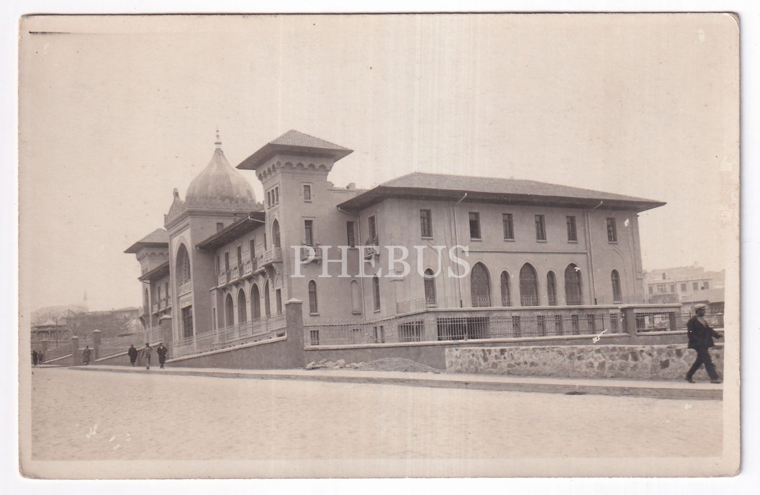 Ankara Meclis-i Milli-yi Aliye Binası karşısında bulunan Evkaf Oteli görünümü, arkası Osmanlıca yazılı