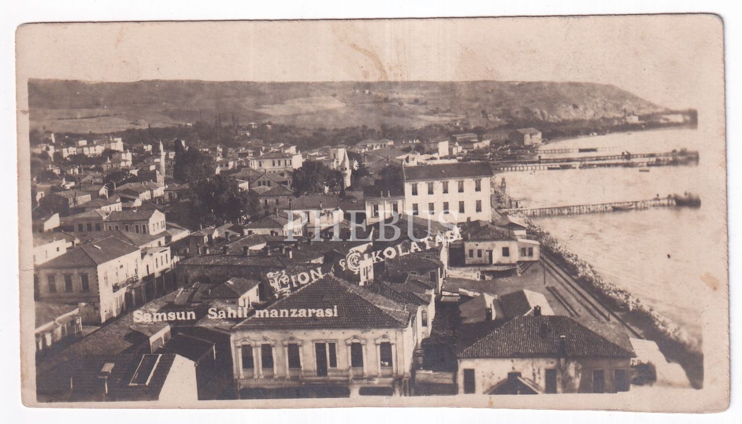 Samsun sahil manzarası, Lion Çikolatası kartı, Osmanlıca yazılı