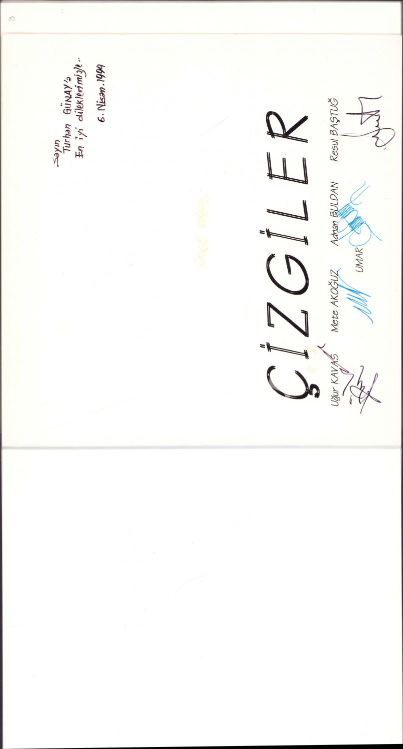 Çizgiler, Uğur Kava - Mete Akoğuz - Adnan Buldan - Resul Baştuğ, Dört yazardan da Gazeteci Turhan Günay'a imzalı, İstanbul 1994, 35 sayfa, 20x22 cm