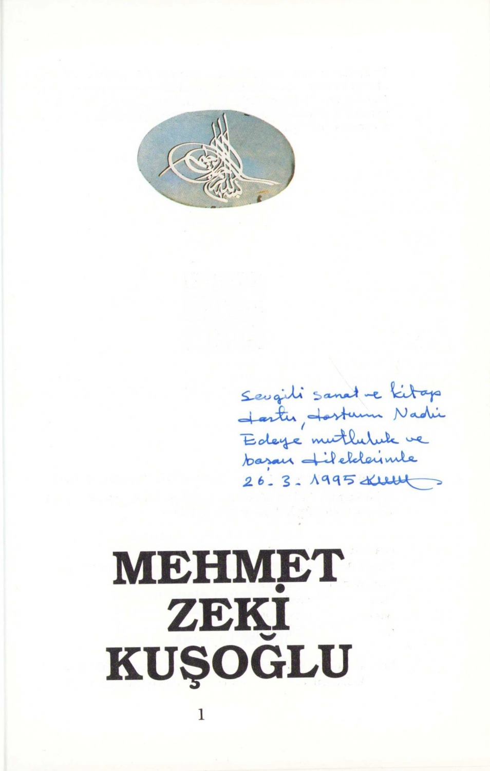 "Sevgili sanat ve kitap dostu, Nadir Ede'ye mutluluk ve başarı dileklerimle" Şömiz tamir görmüş
