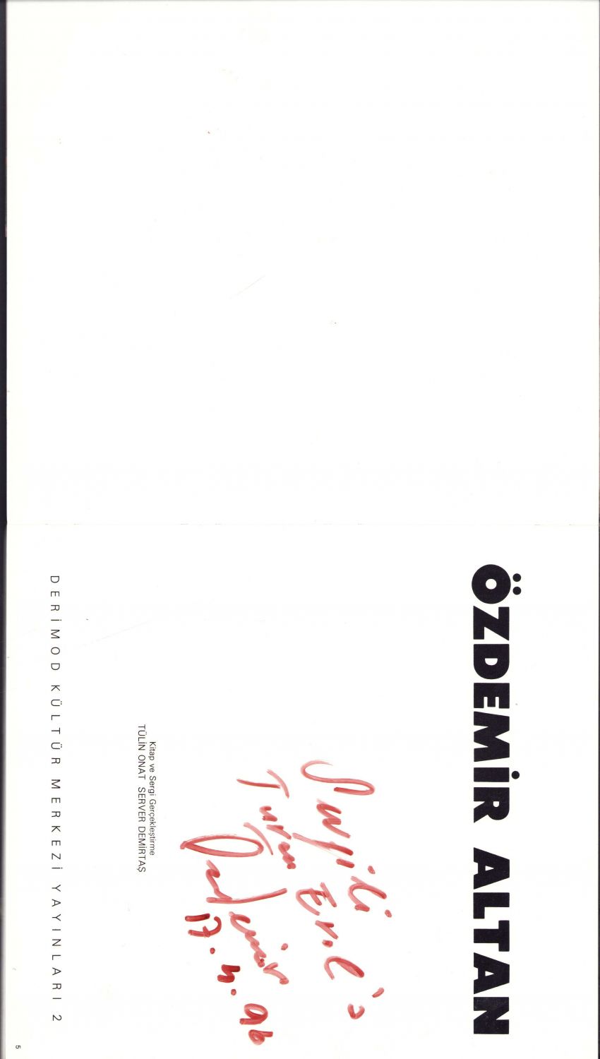 Özdemir Altan, Yazarından Ressam Turan Erol'a imzalı ve ithaflı, İstanbul 1989, 119 sayfa, 24x22 cm