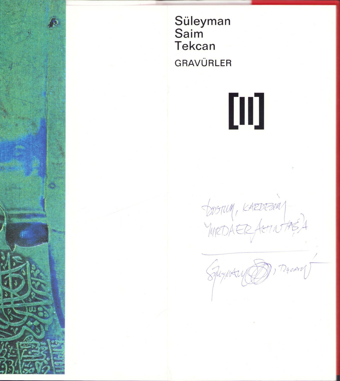 Gravürler, Süleyman Saim Tekcan'dan Grafik Tasarımcısı Yurdaer Altıntaş'a imzalı ve ithaflı, İstanbul 2001, 86 sayfa, 15x33 cm