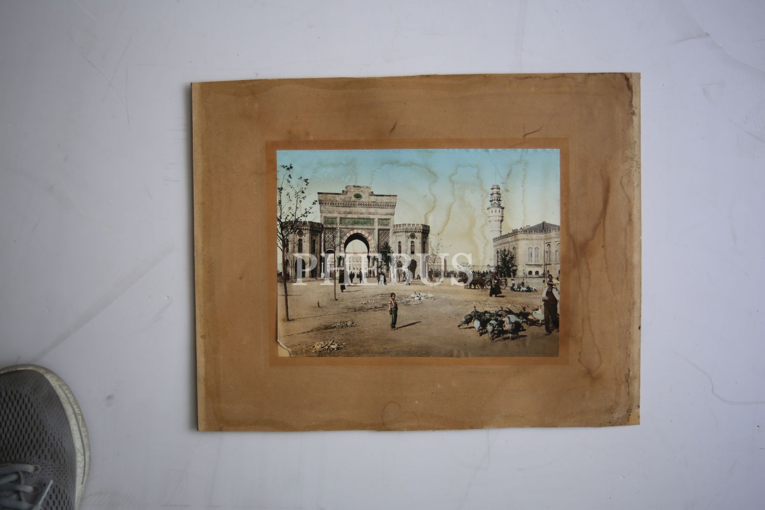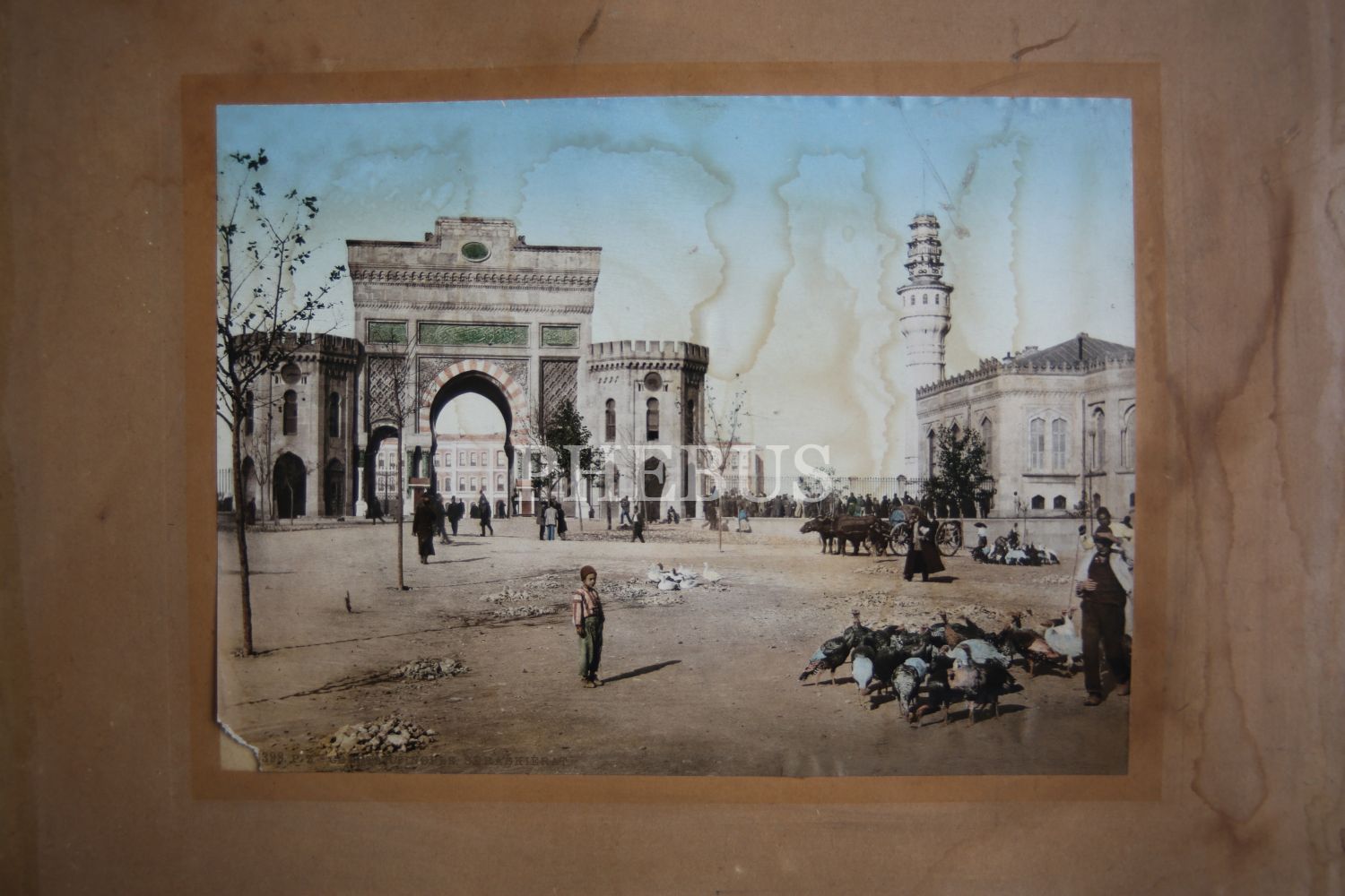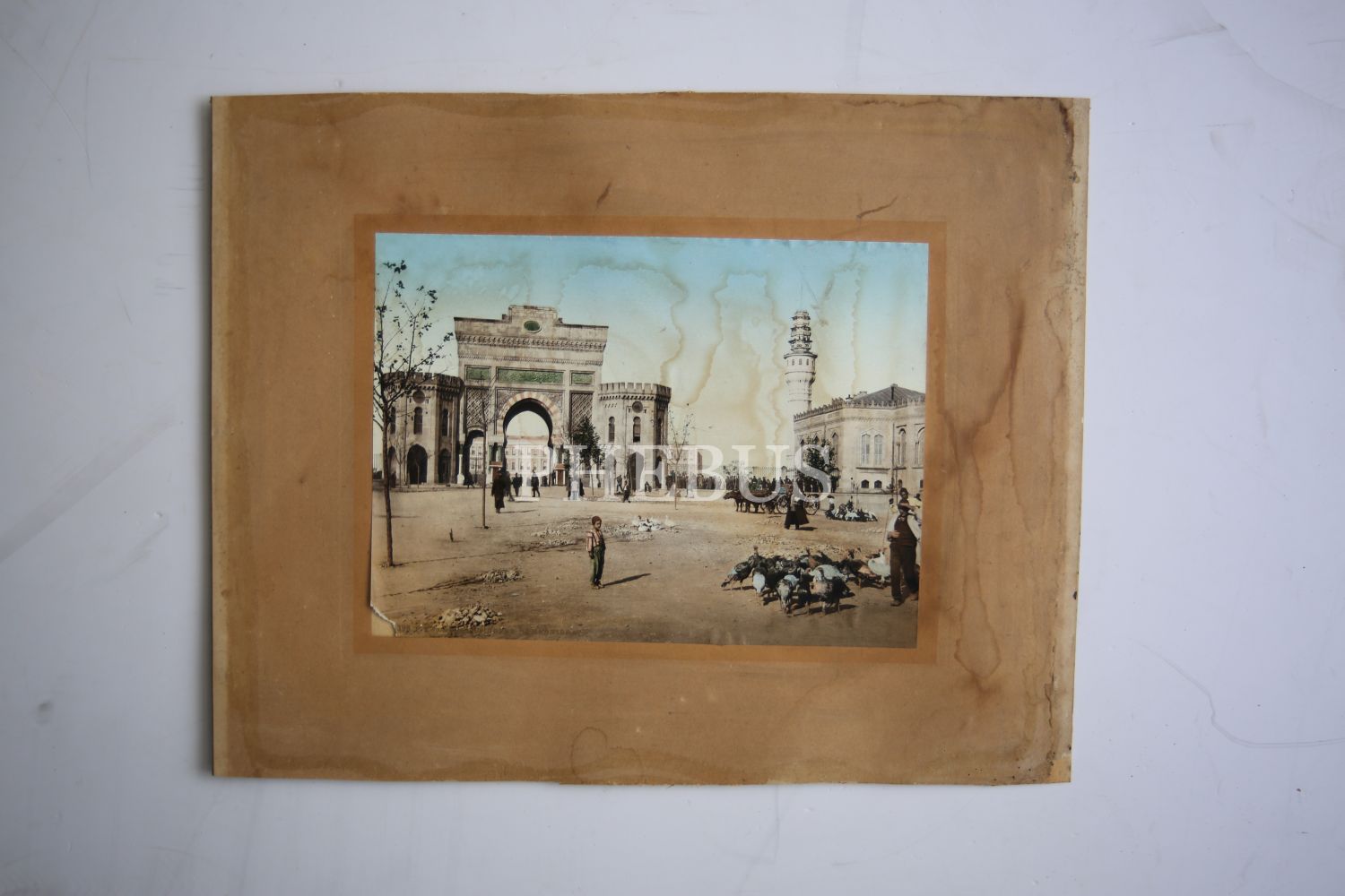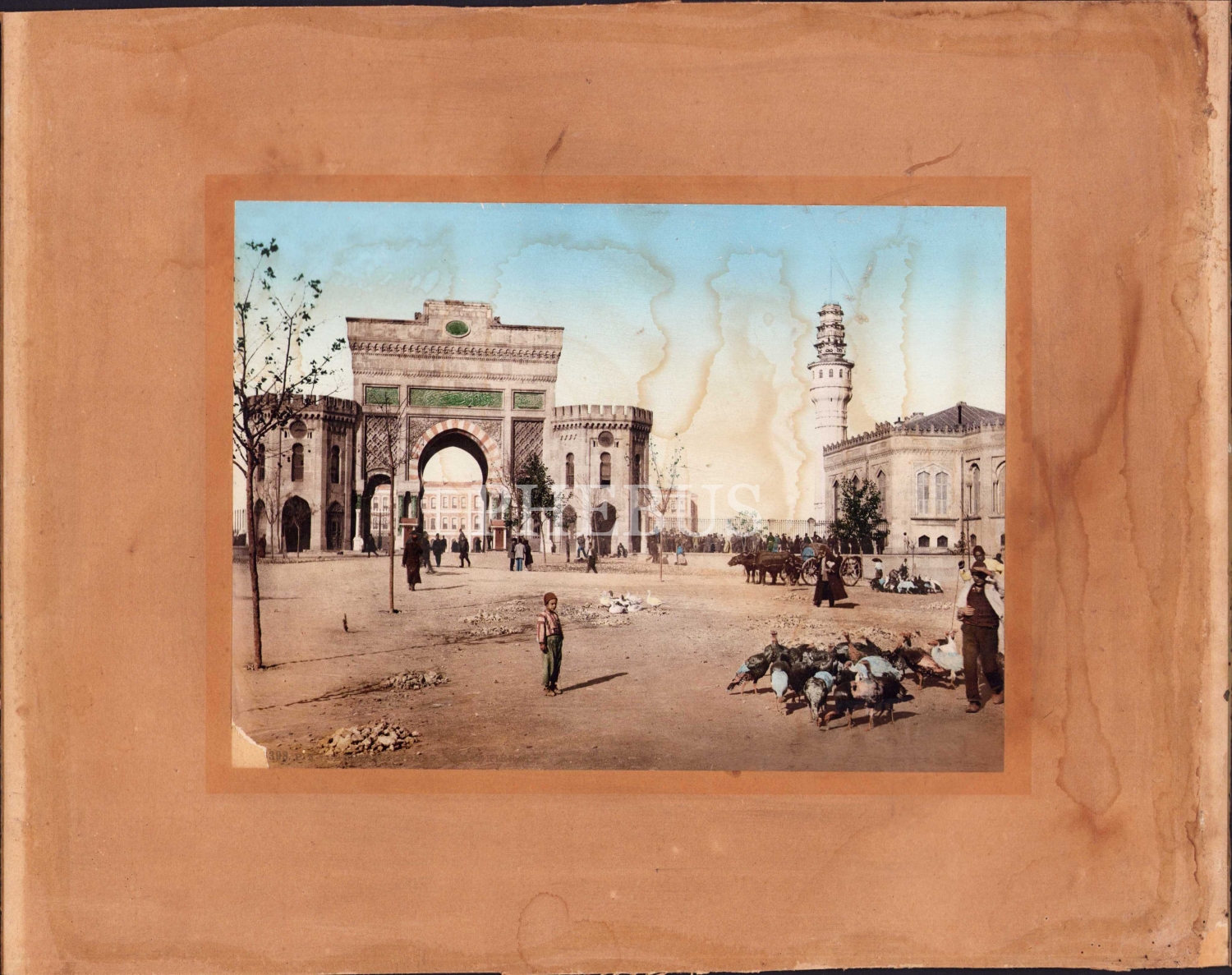 Bayezid Meydanı, Harbiye Nezareti Kapısı [İstanbul Üniversitesi] ve Bayezid Yangın Kulesi, haliyle, 23x16 cm