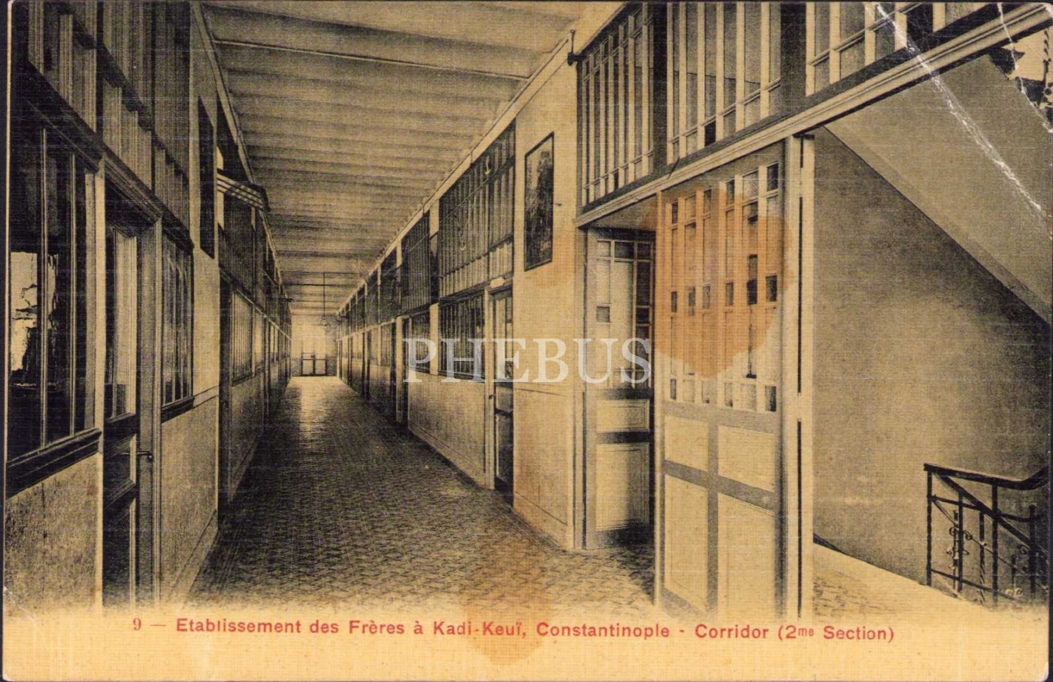 Osmanlı dönemi kartpostal, Kadikeui [Kadıköy] Saint Joseph Lisesi Koridor, Constantinople, A. Breger Freres-Paris.
