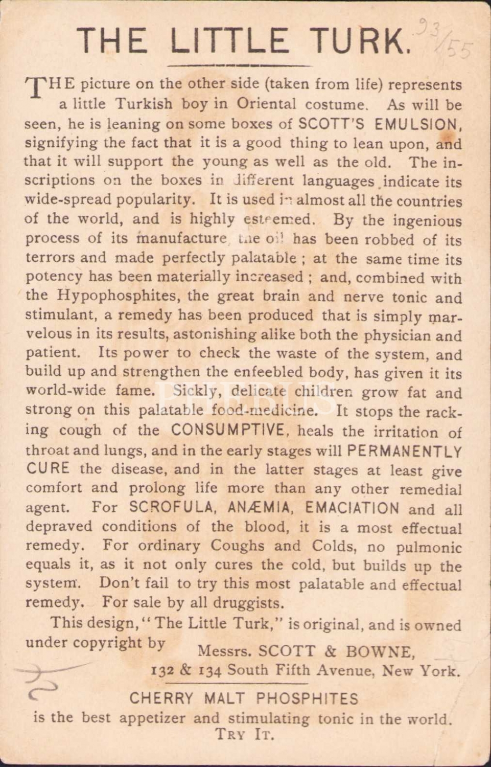 The Little Turk, Osmanlıca Balıkyağı reklam kartı, 9x13 cm