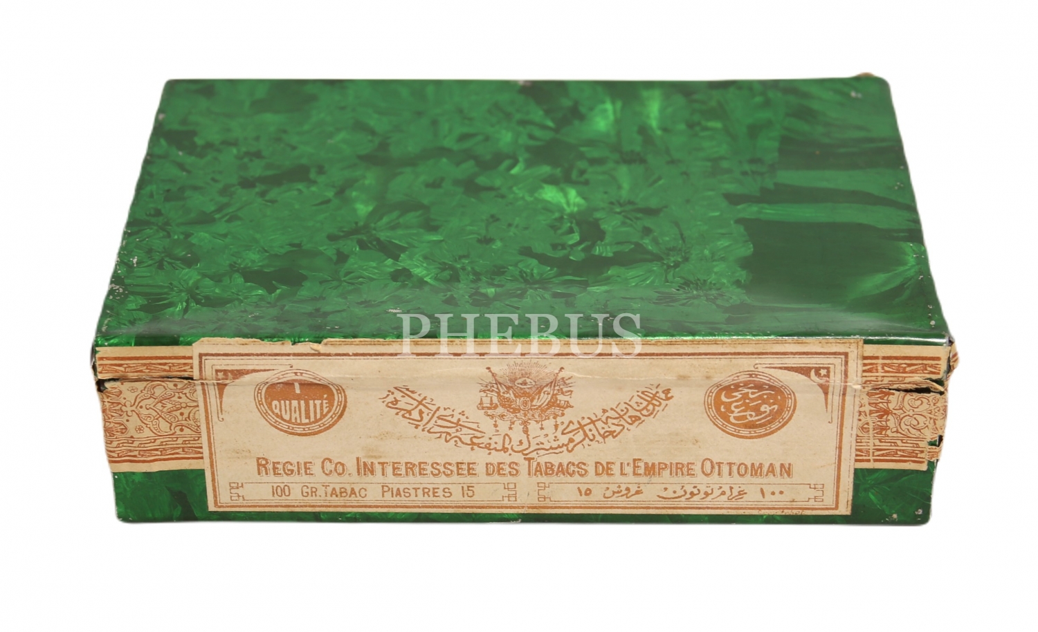 Memalik-i Şahane Duhanları Müşterekü'l Menfaa Reji İdaresi teneke tütün kutusu, Birinci Nev', dolu vaziyette, 16x11x4 cm