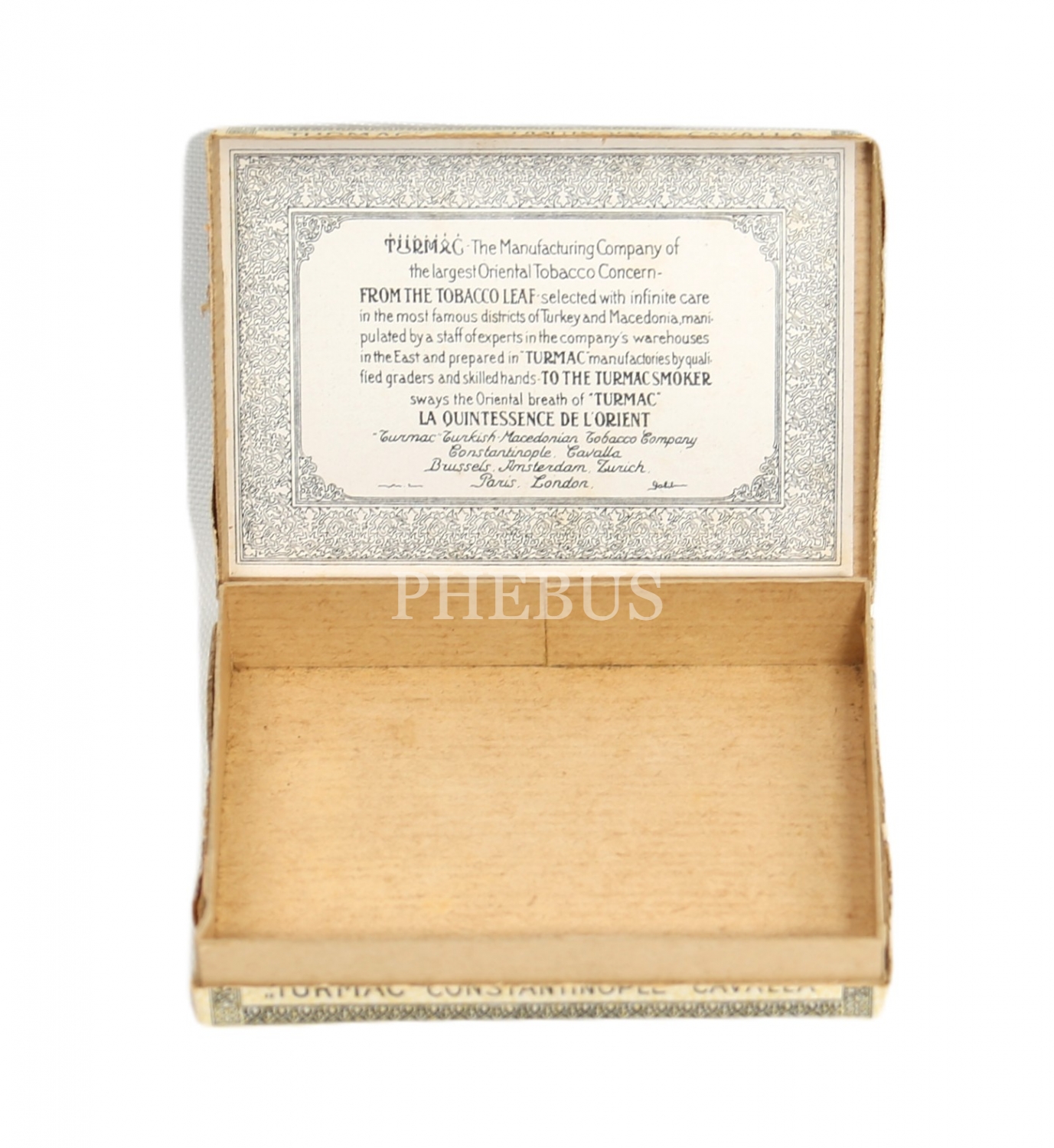 Turmac [Turkish Macedonian Tobacco Company] Bouquet karton sigara kutusu, Constantinople-Cavalla, Osmanlıca, 10x7x2 cm