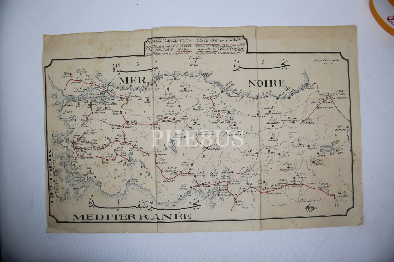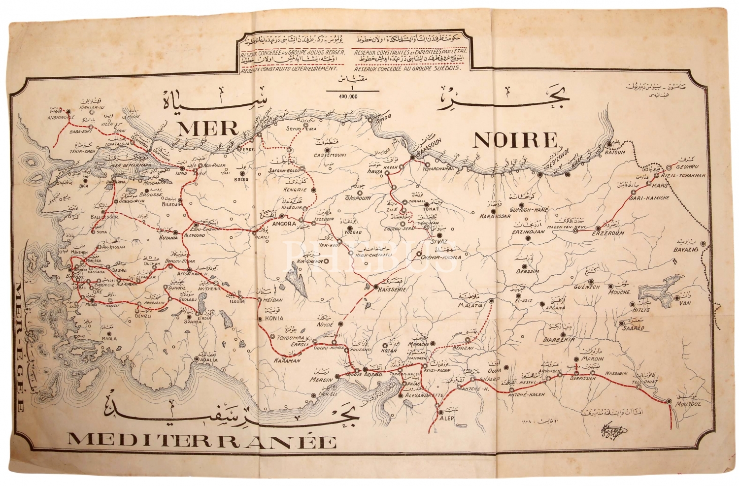 Hükumet ve Yabancı Şirketler [Julius Berger] tarafından inşa edilmekte olan demiryolları haritası, 1/400.000, Samsun-Sivas Demiryolu Heyet-i Fenniyesi, 1928 tarihli, Osmanlıca ve Fransızca, 54x35 cm