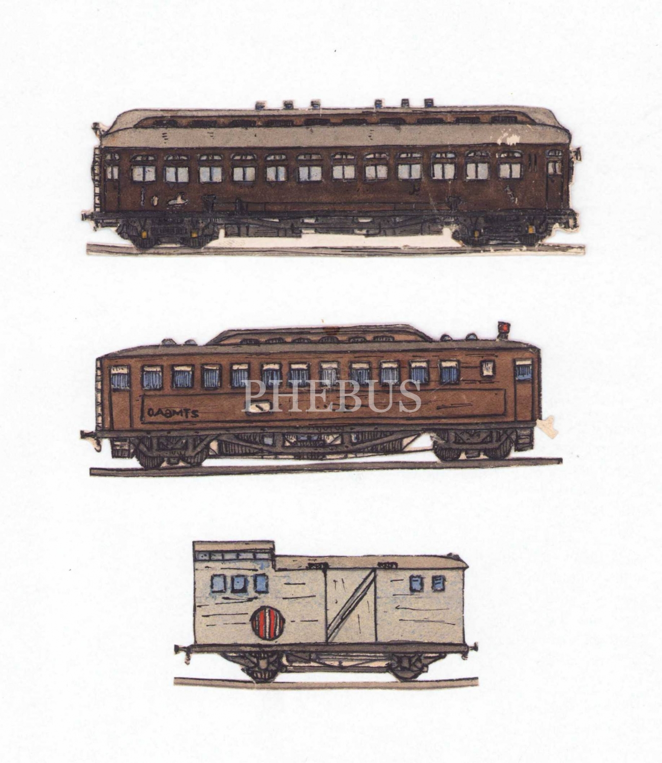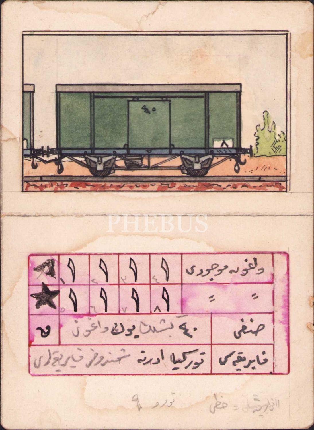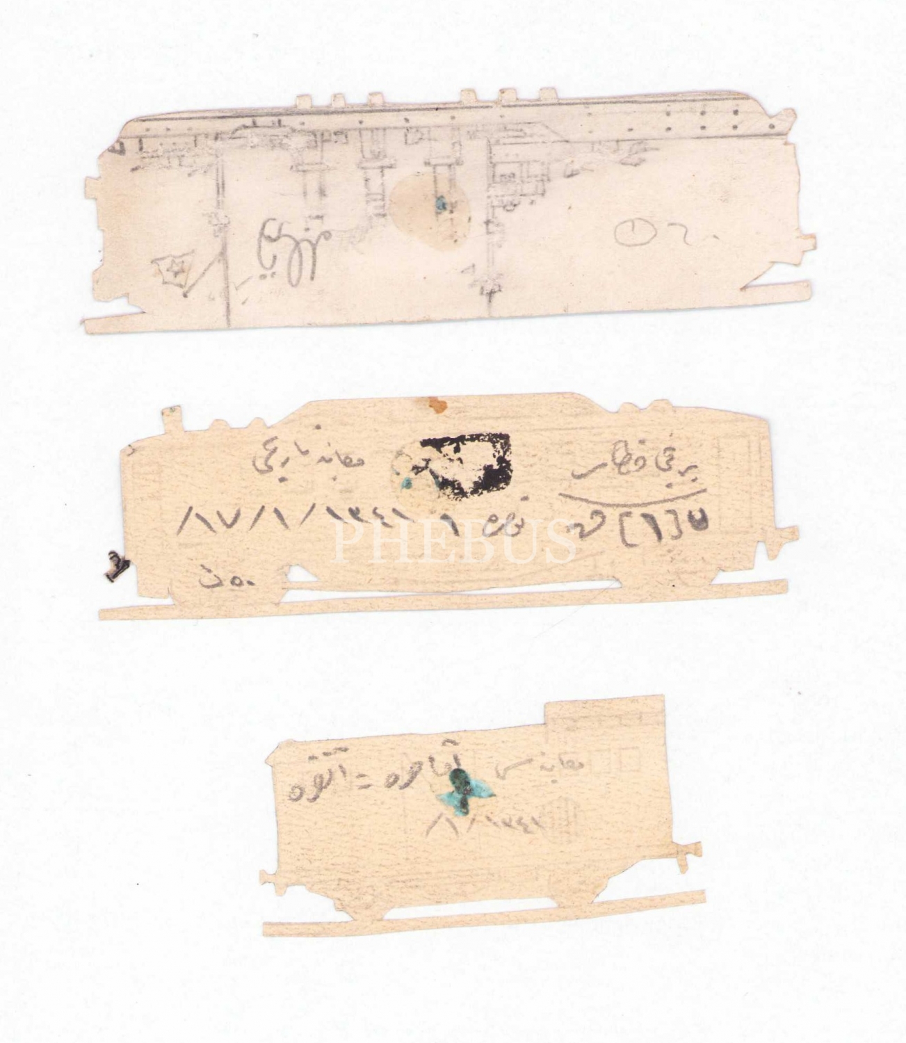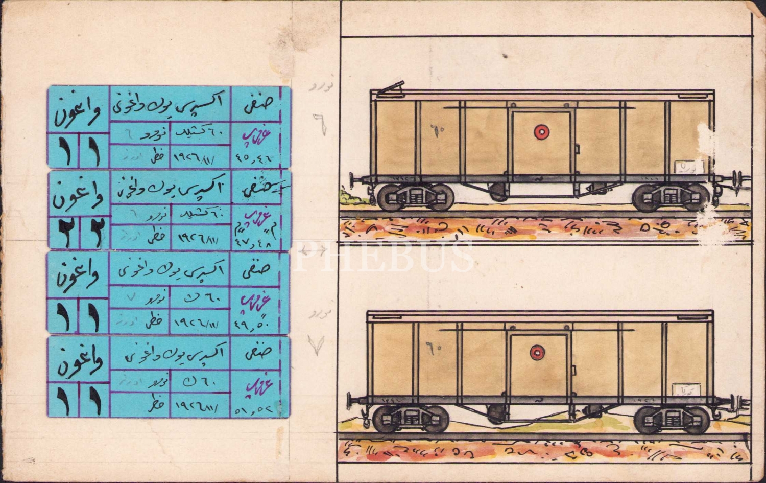 Ressam Ruhi Arel'e ait ekspres tren yük vagonu çizimleri, Osmanlıca, 7 parça, 19x12 cm
