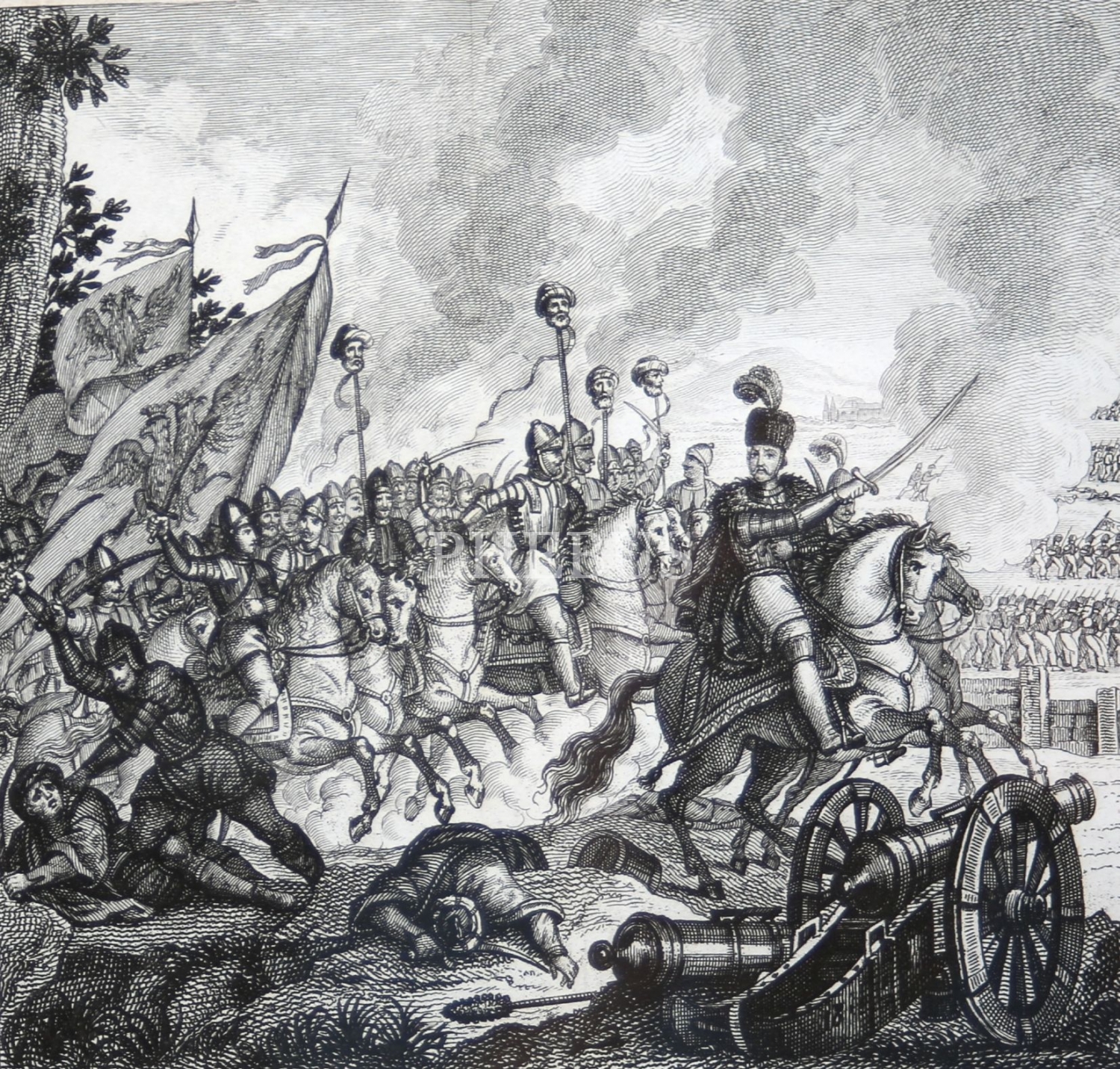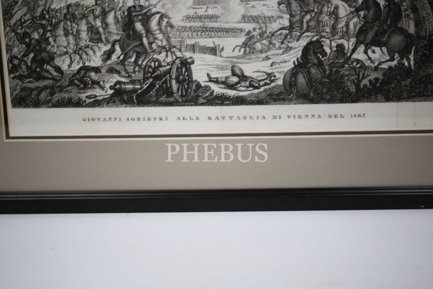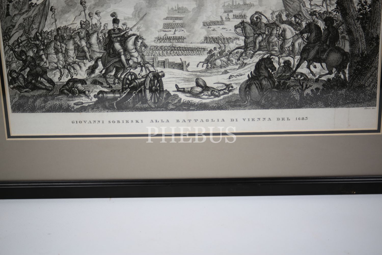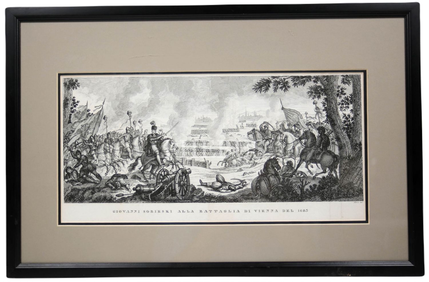 1683 Viyana Kuşatması'nda Giovanni Sobieski gravür, İtalyanca "Giovanni Sobieski Alla Battaglia Di Vienna Del 1683" yazılı, çerçeveli, 40x20 cm