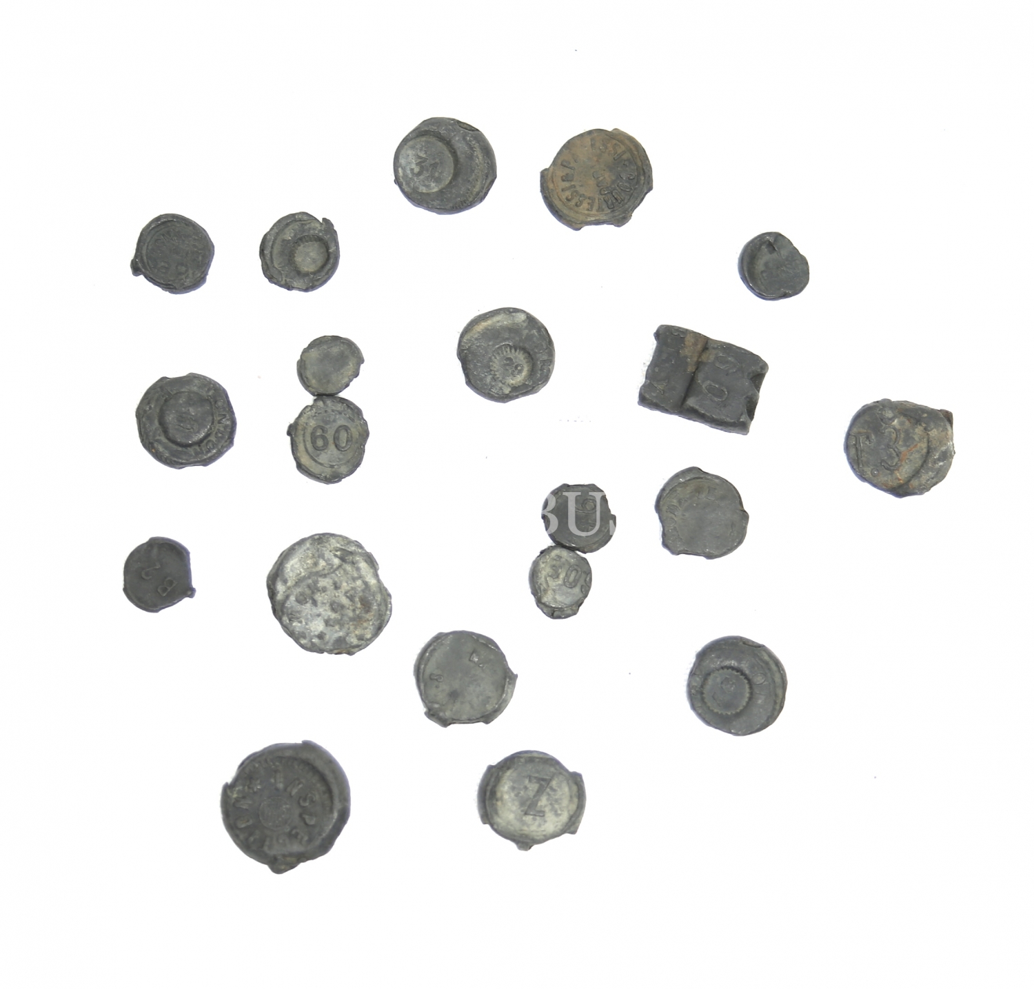 Osmanlı dönemi kurşun hava gazı açma kapama mühürleri, 20 adet, 2 cm