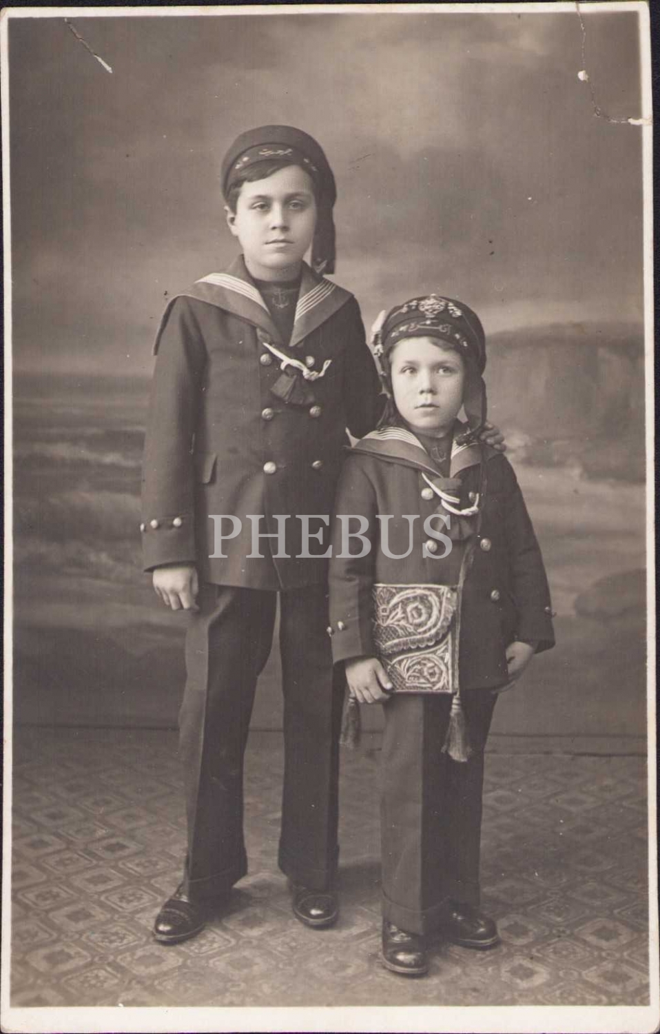 Mektebe başlama hatıra fotoğrafı, şapkalarında Osmanlıca "Ankara" ve "Cumhuriyet" yazılı, 1928 tarihli, 14x9 cm