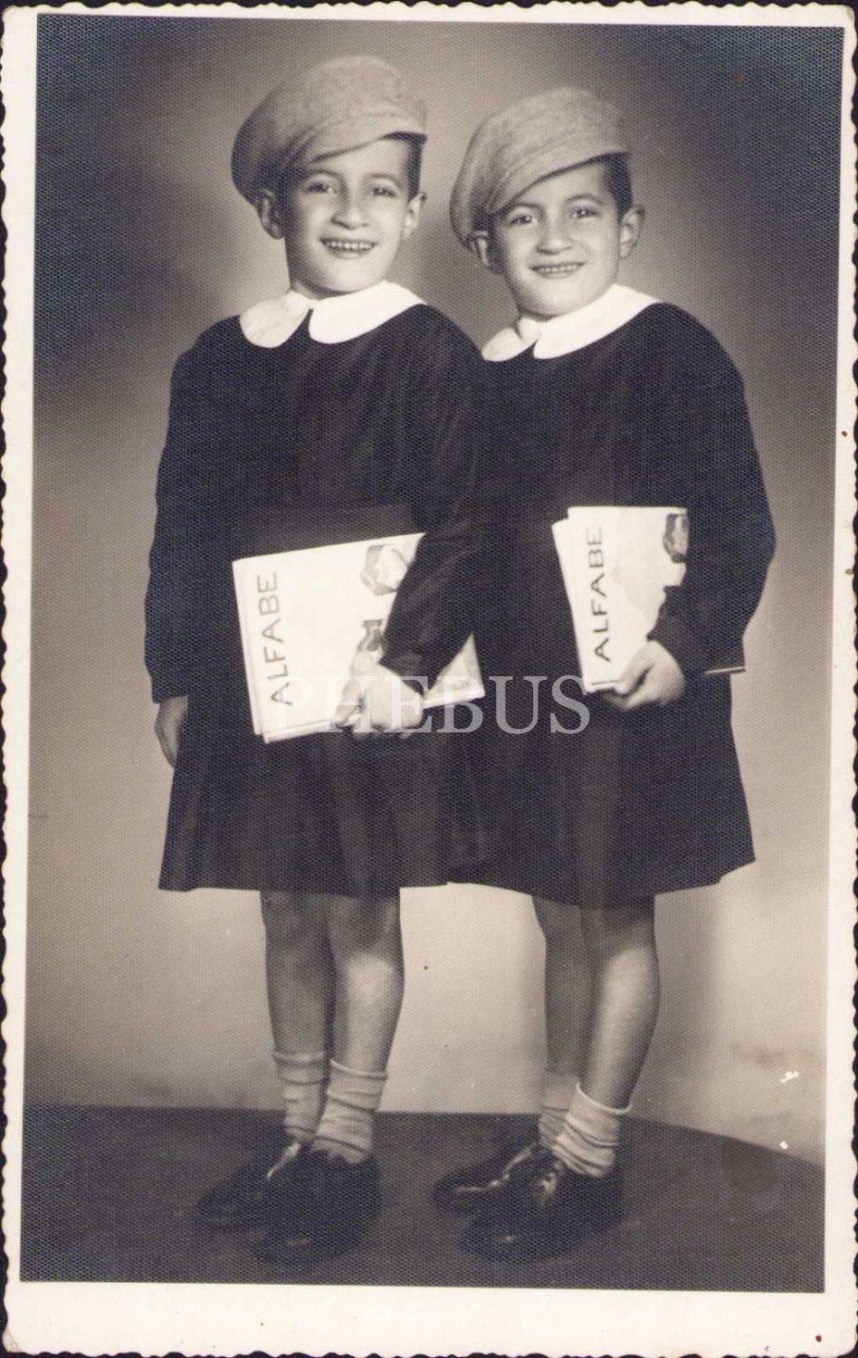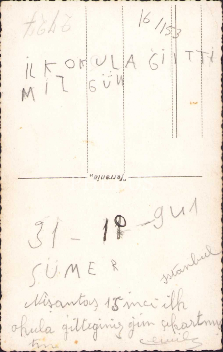 1941 tarihli okula başlama hatıra fotoğrafı, arkası Osmanlıca ithaflı, 14x9 cm