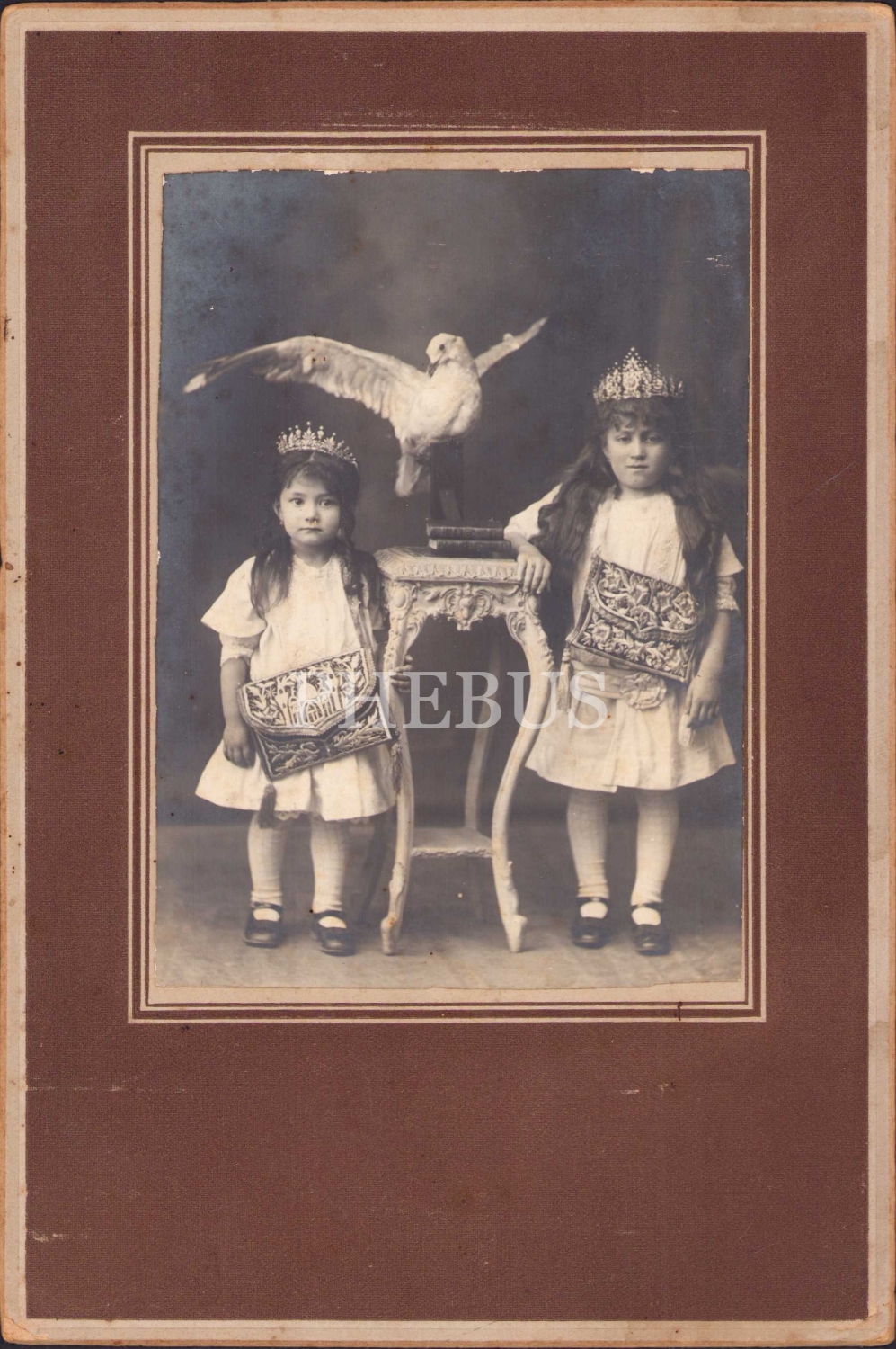 Mektebe başlayan kız çocukları hatıra fotoğrafı, cüz çantalı, 10x14 cm