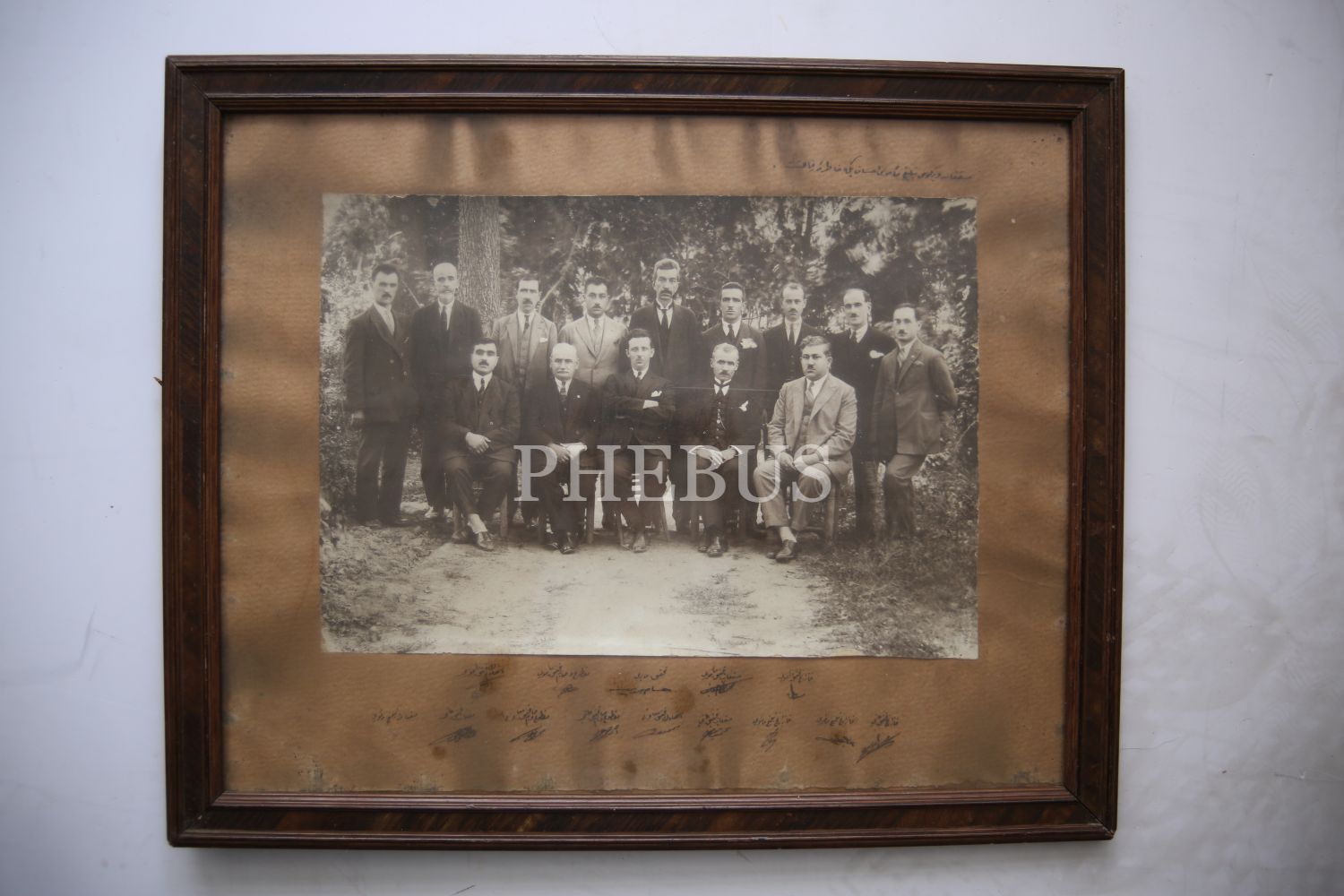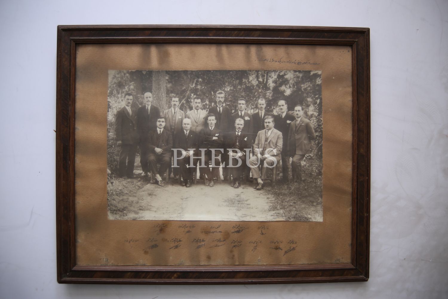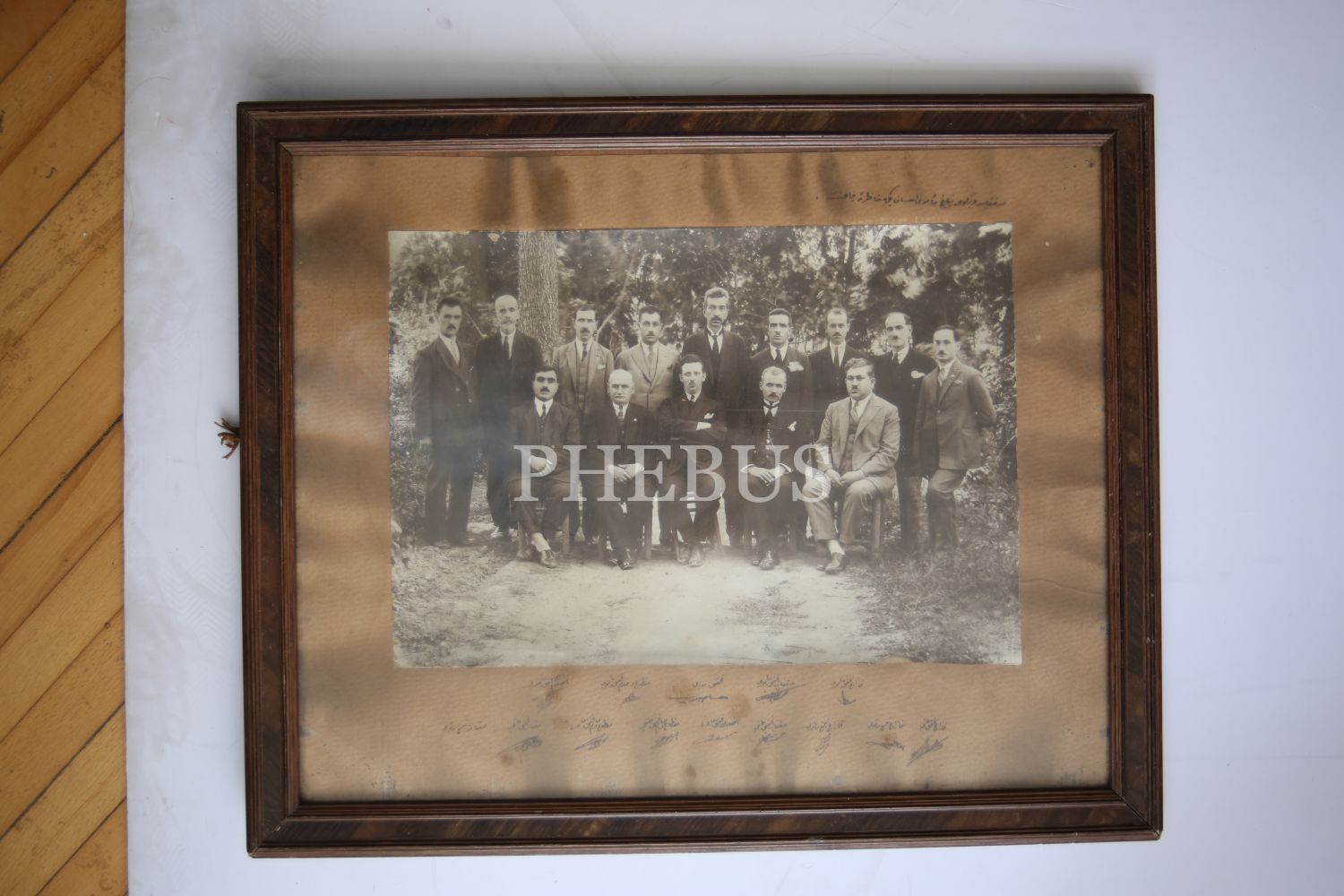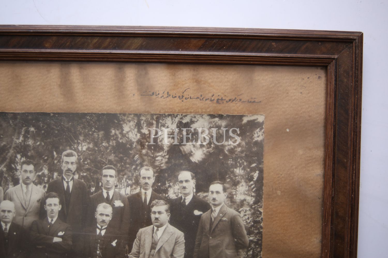 Vergi memurları hatıra fotoğrafı, Vergi memuru İhsan Bey'e ithaflı, Osmanlıca, 37x16 cm