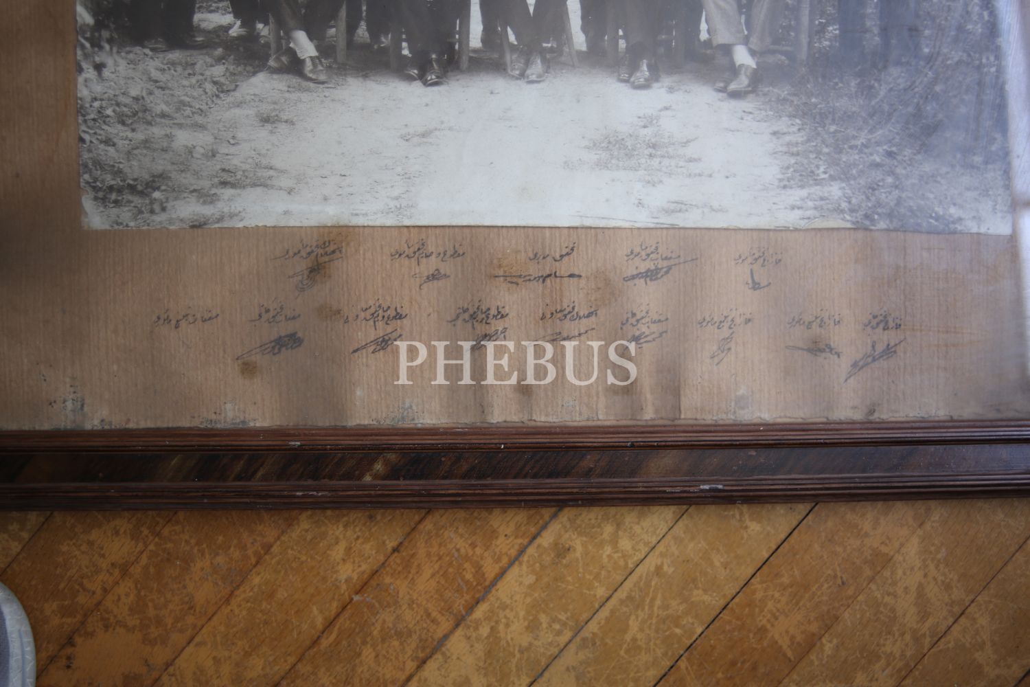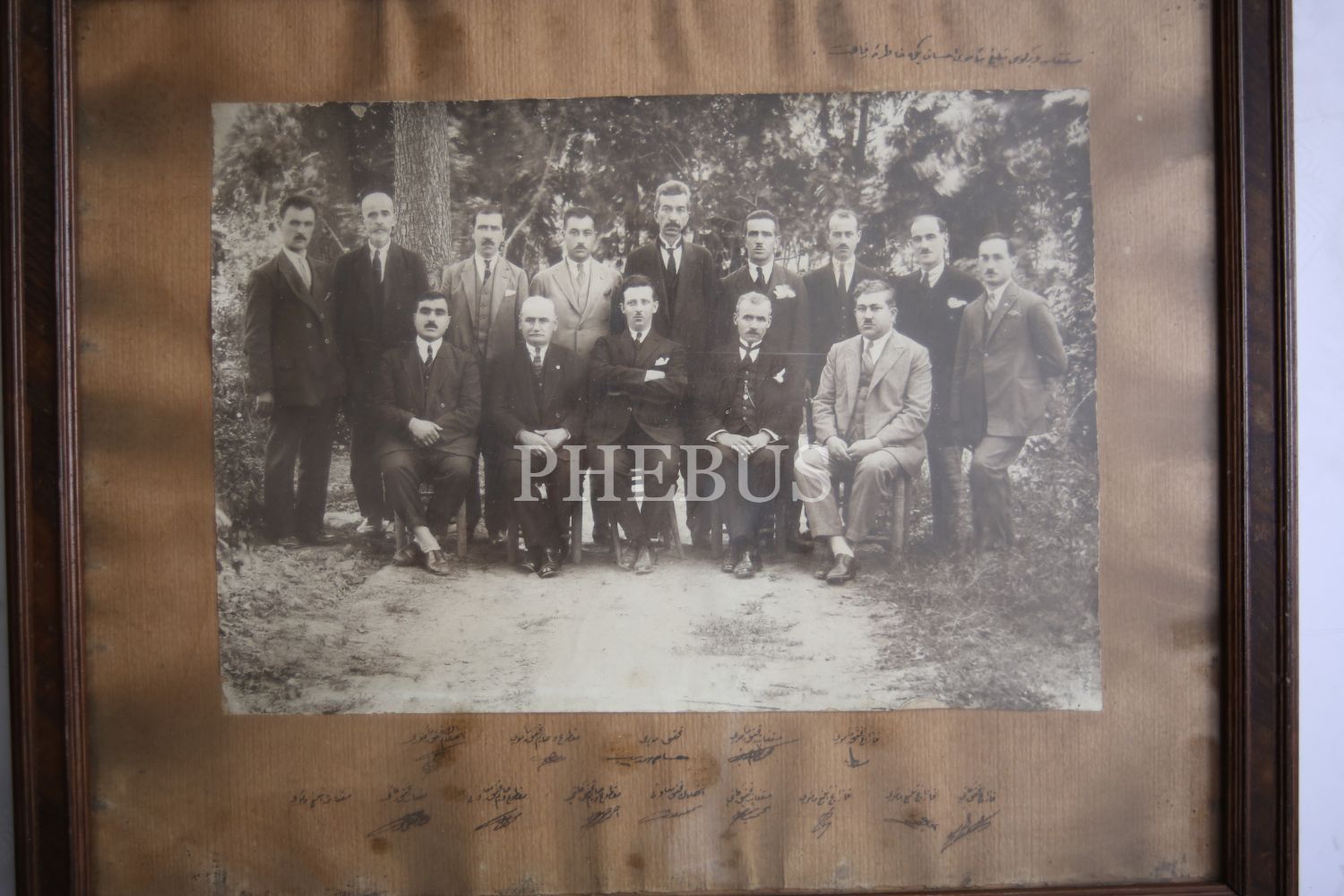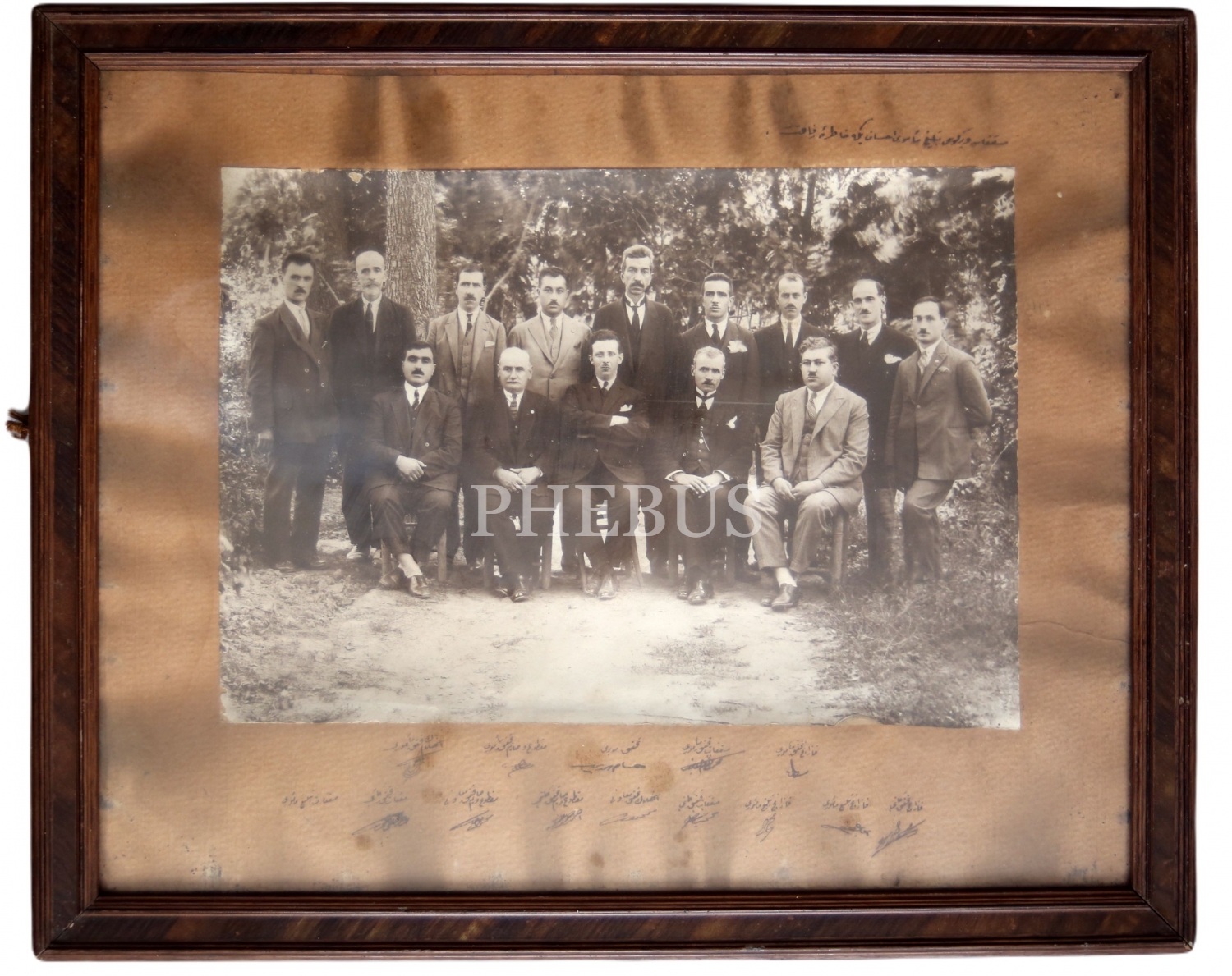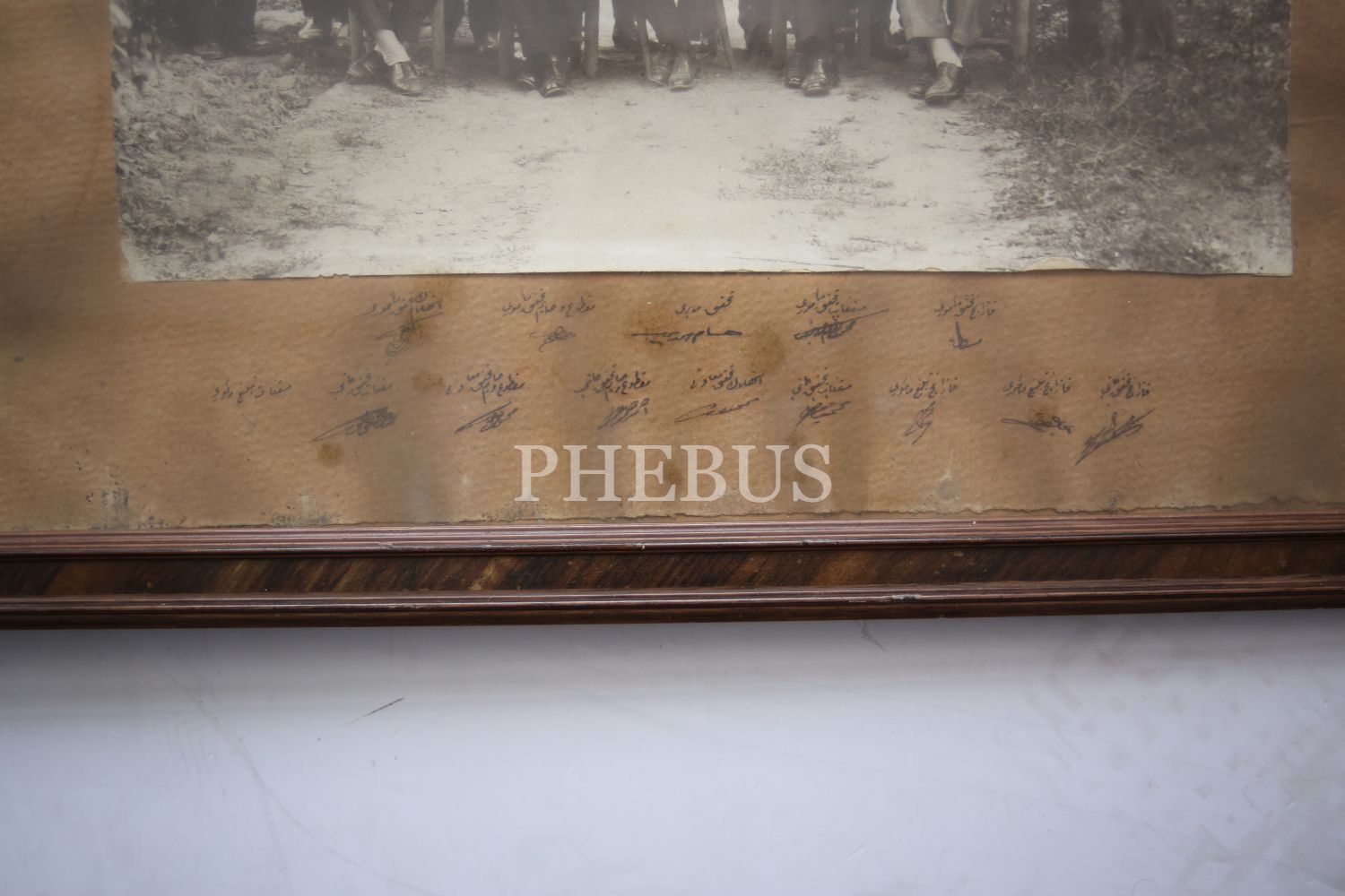 Vergi memurları hatıra fotoğrafı, Vergi memuru İhsan Bey'e ithaflı, Osmanlıca, 37x16 cm
