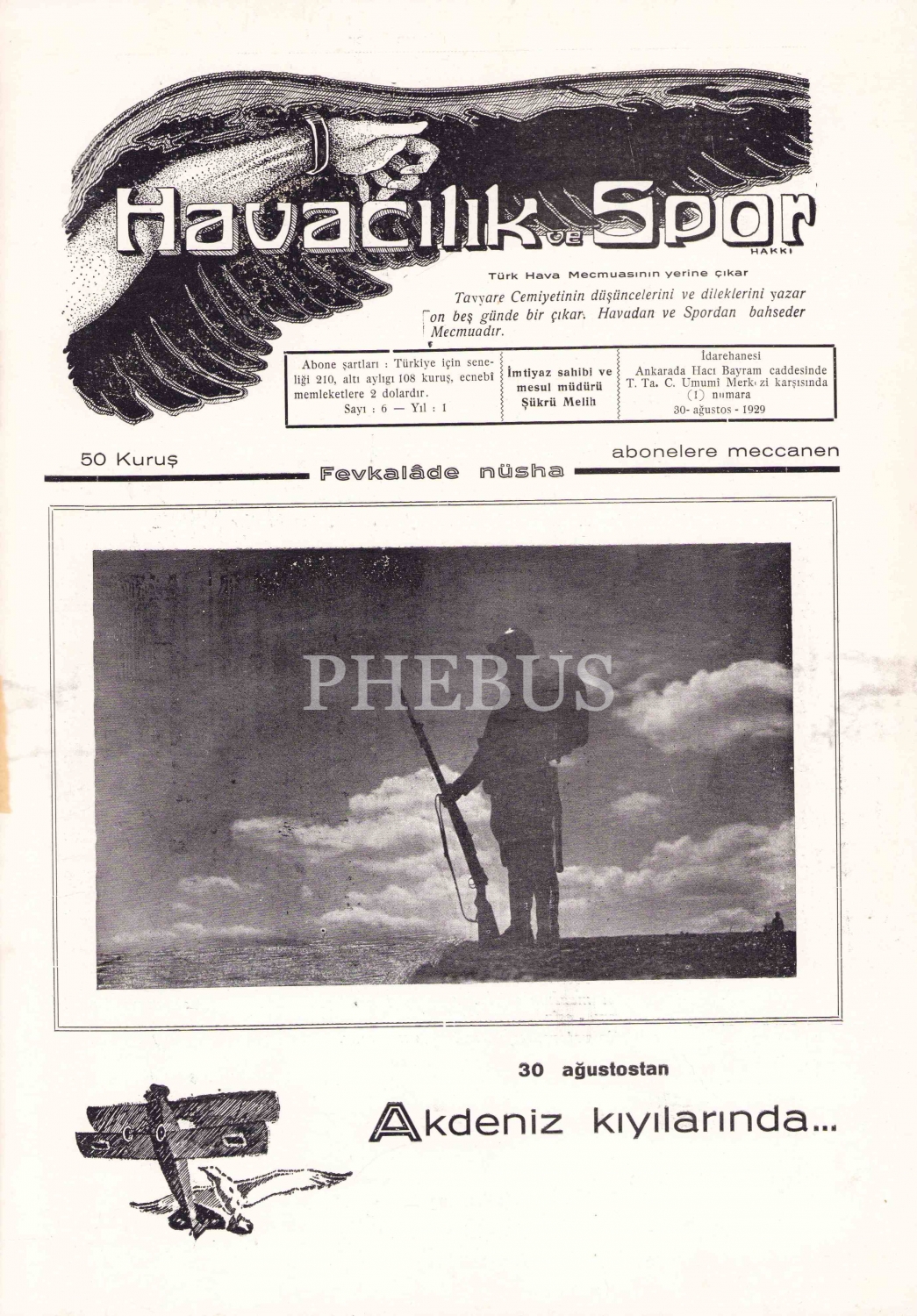 Havacılık ve Spor Mecmuası Fevkalade Nüshası, Ankara, 30 Ağustos 1929 tarihli, Hakimiyet-i Milliye Matbaası, 25x34 cm