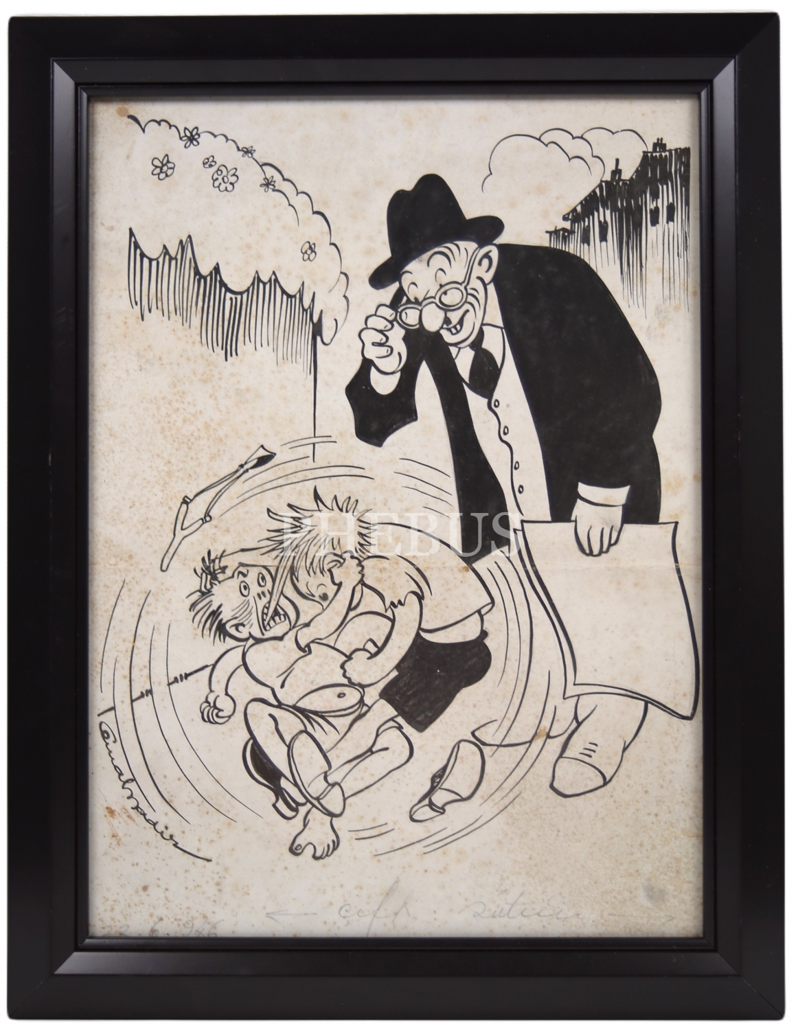 Cemal Nadir Güler ıslak çizim karikatür, imzalı, 24x33