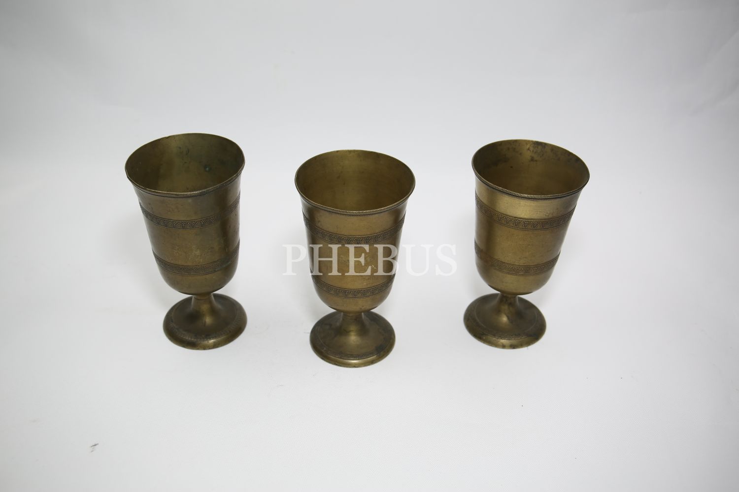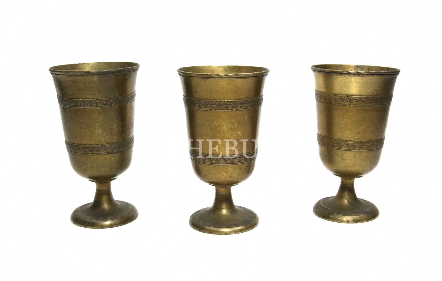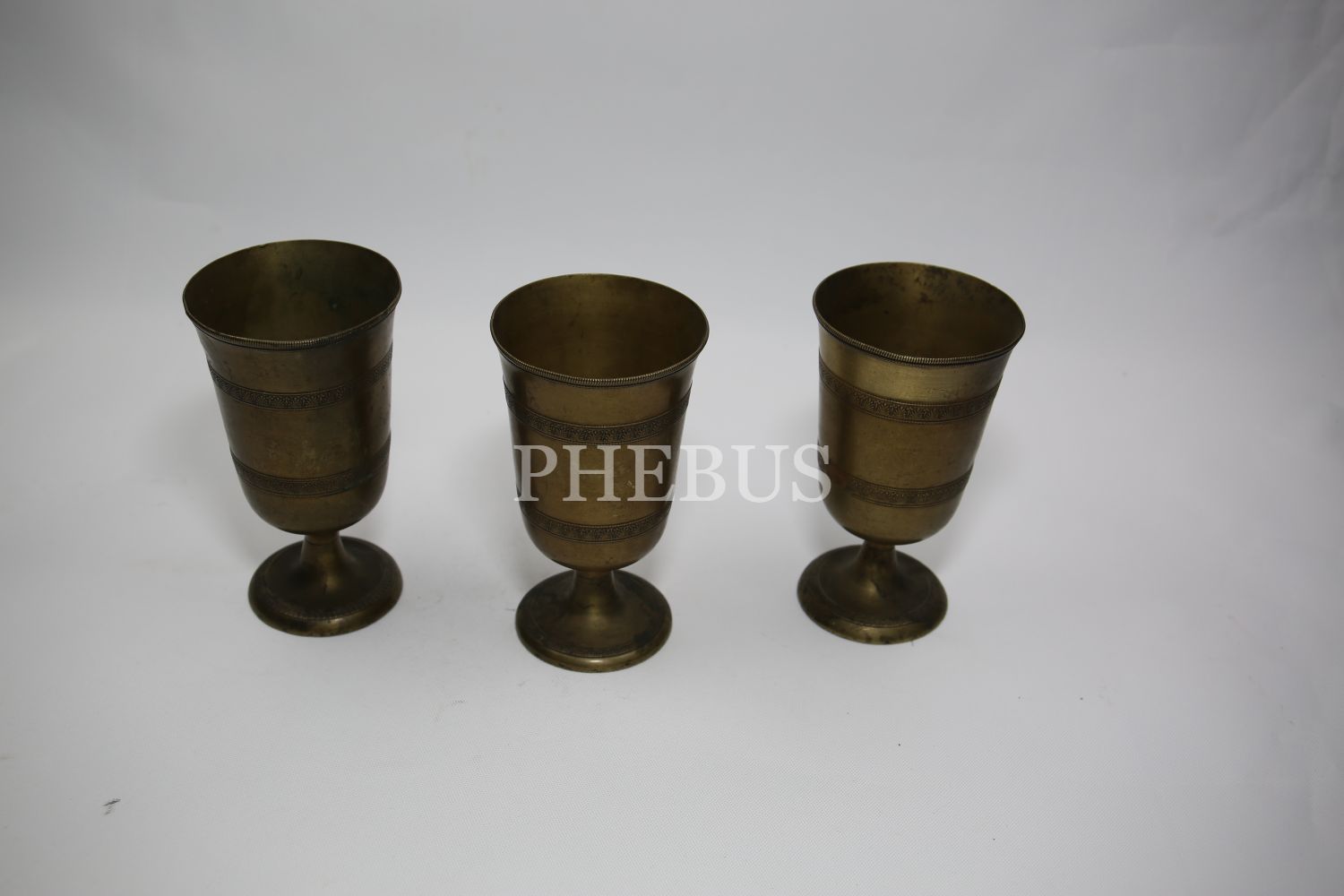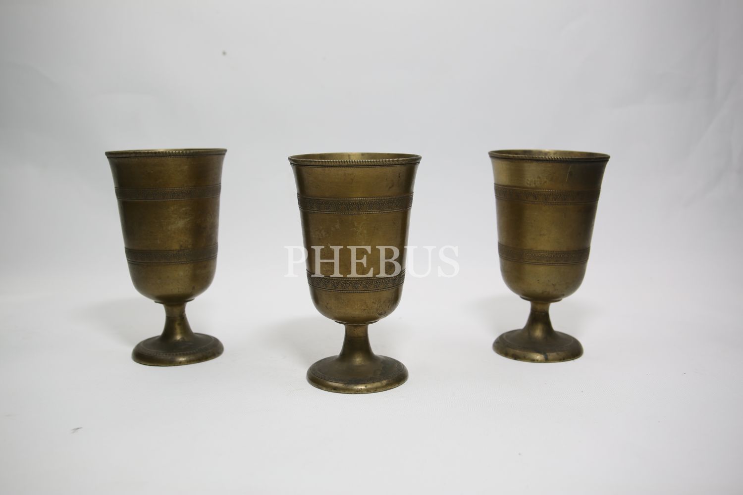 Süleymaniye işi üç adet pirinç bardak, 7x14 cm