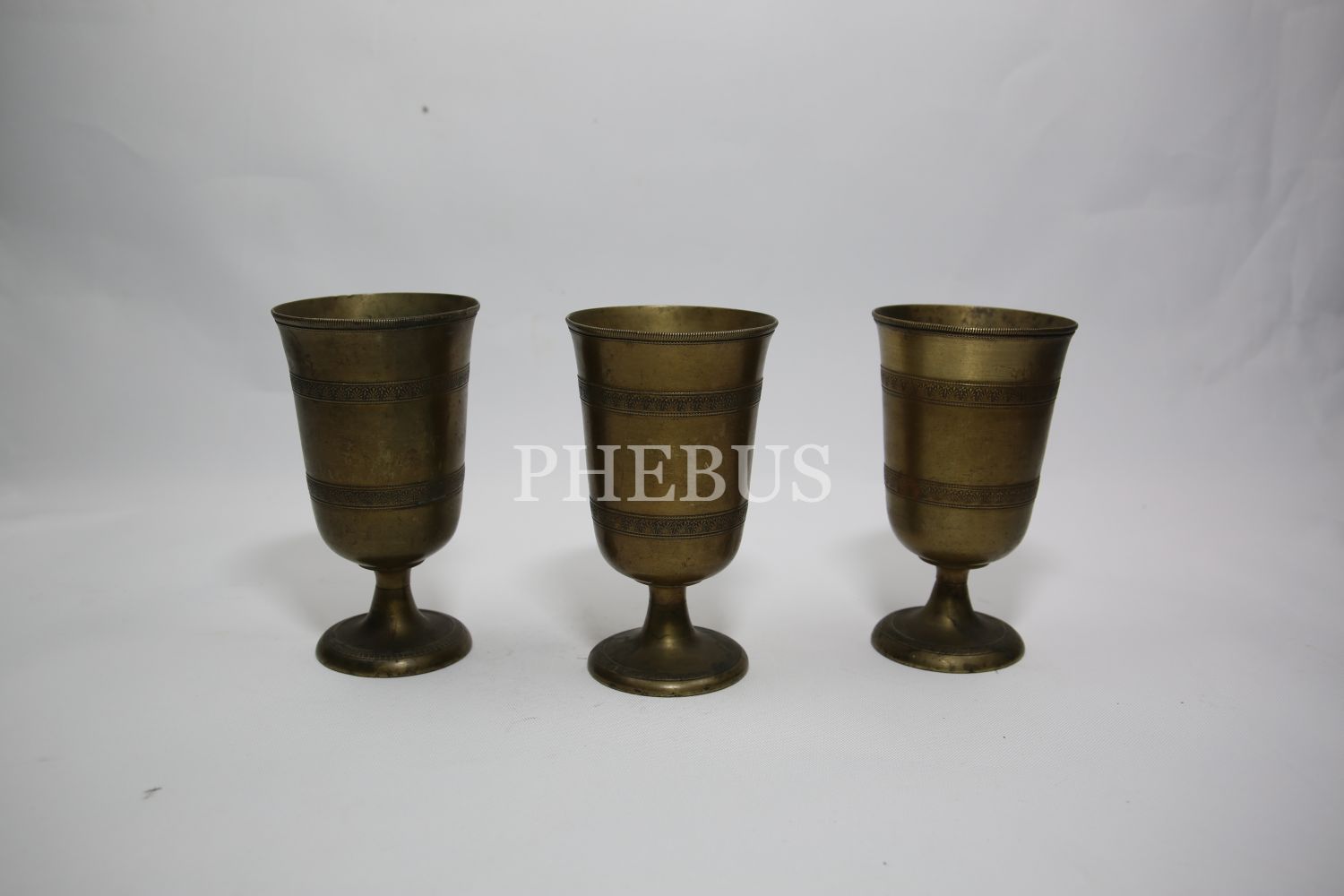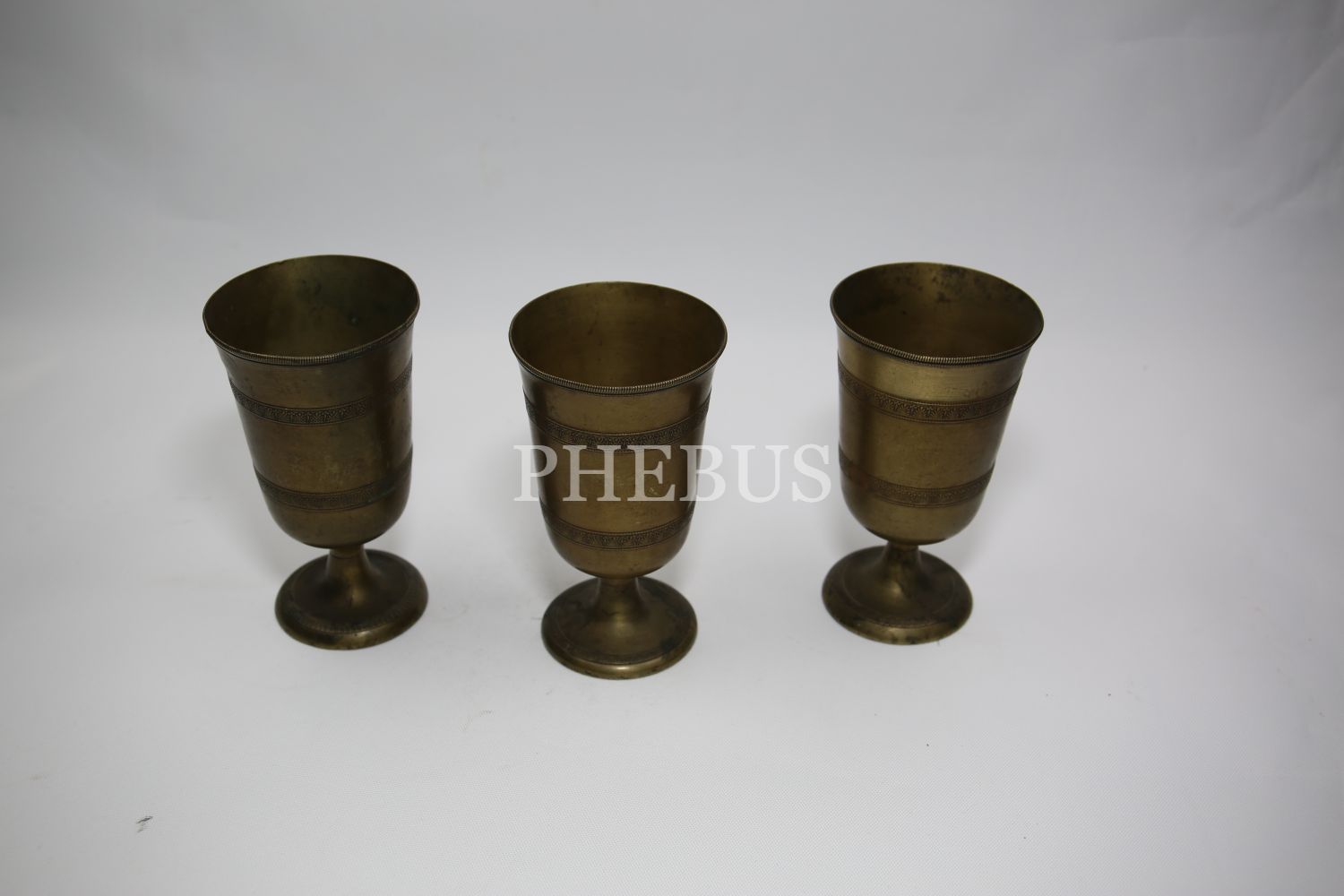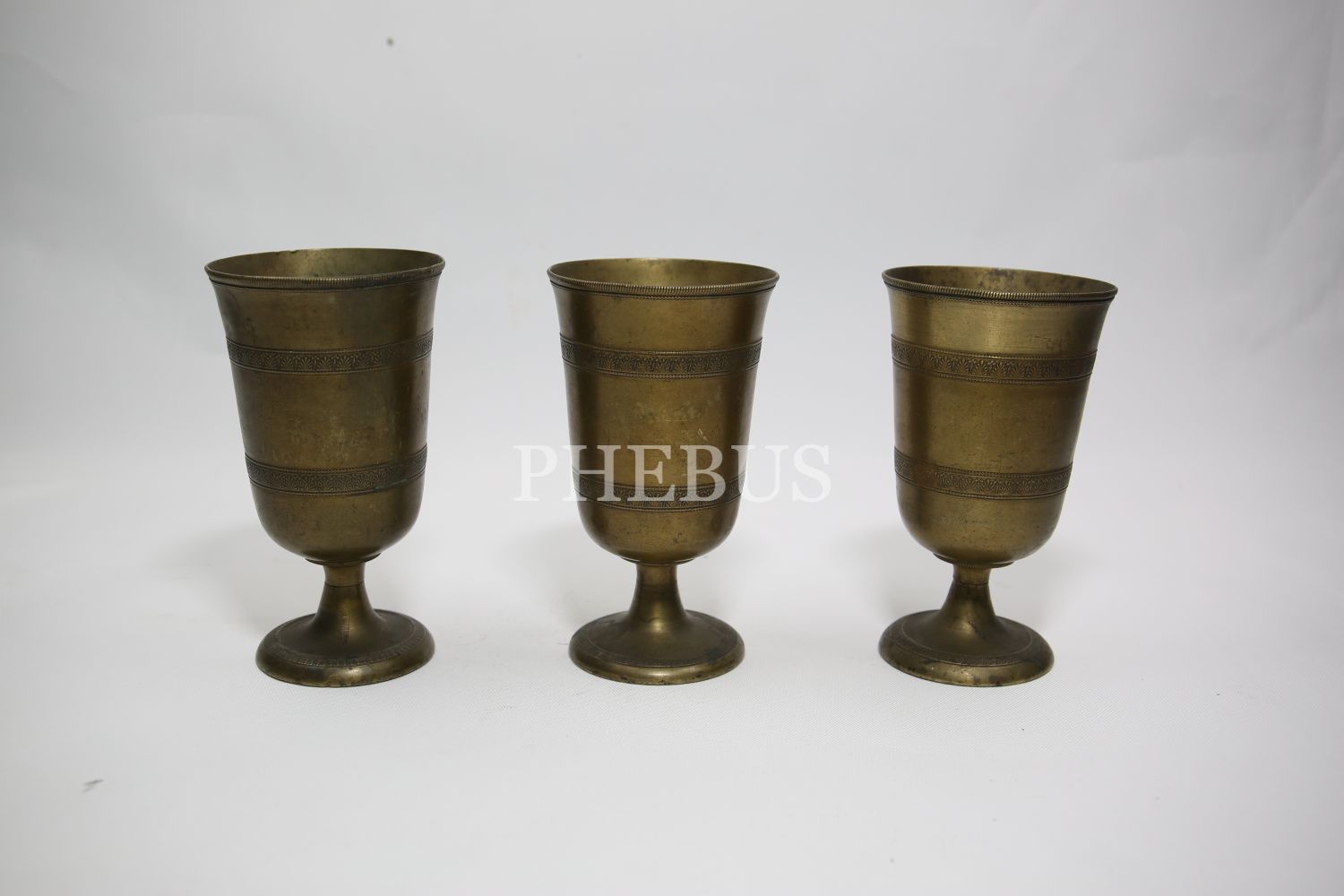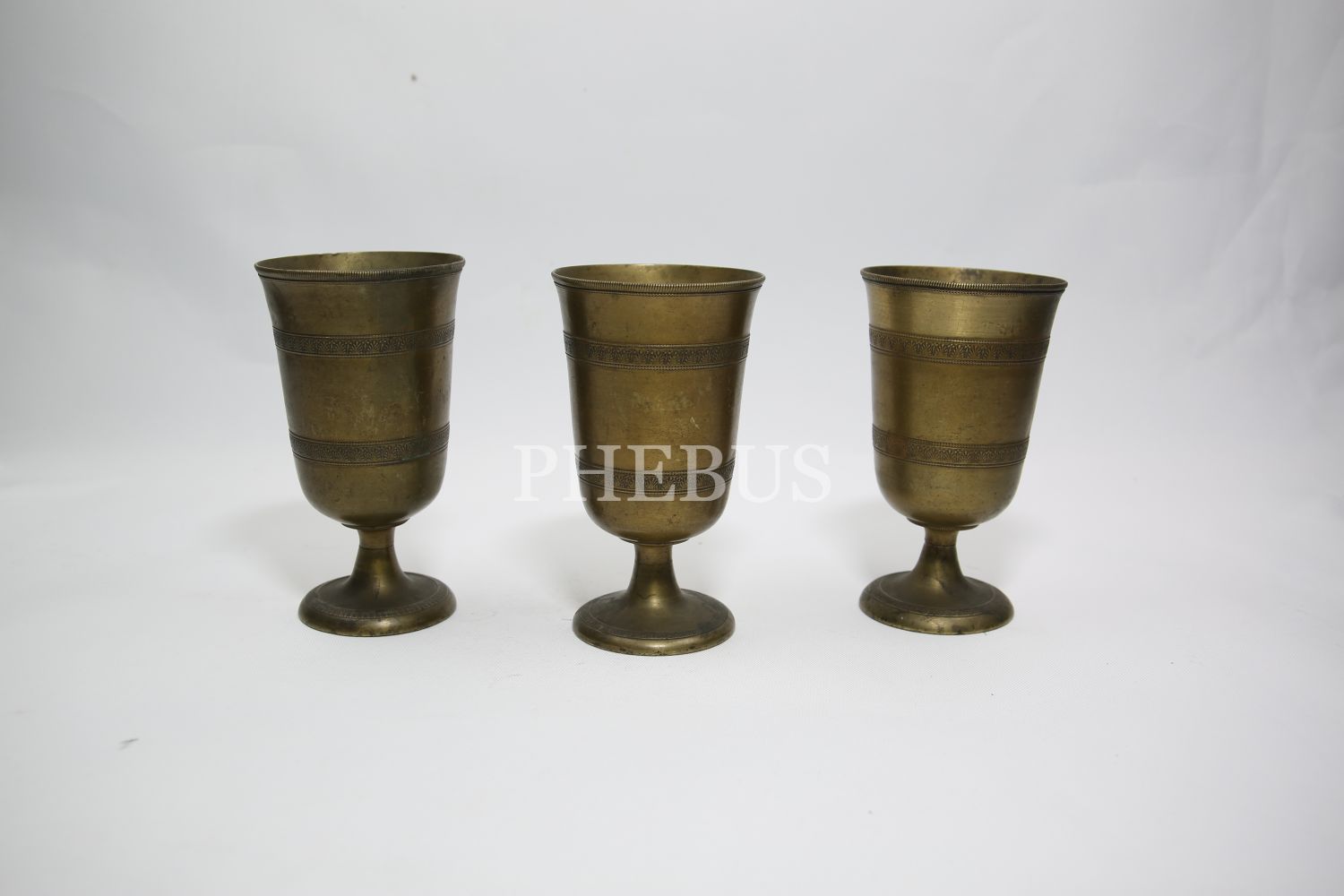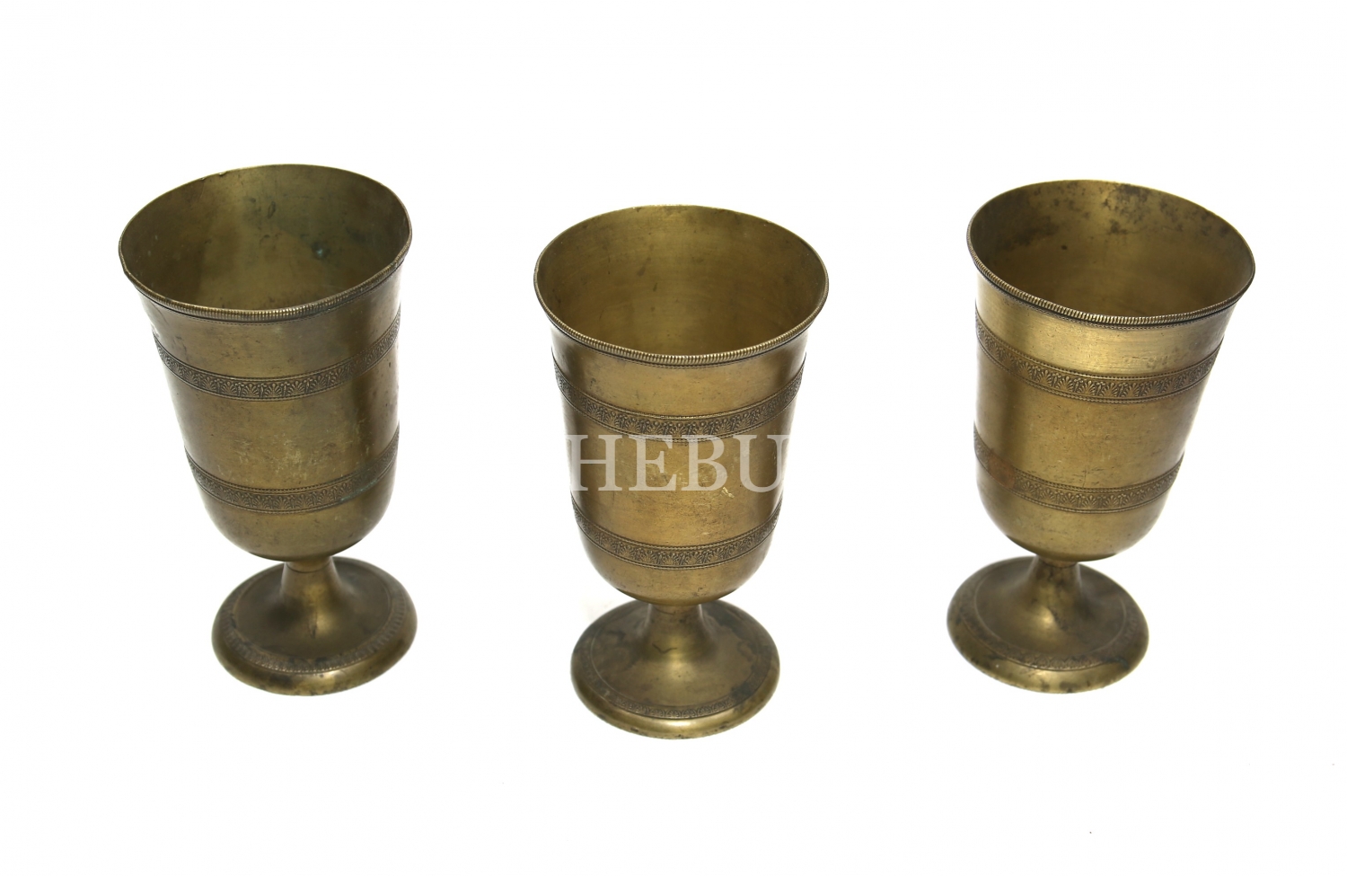Süleymaniye işi üç adet pirinç bardak, 7x14 cm