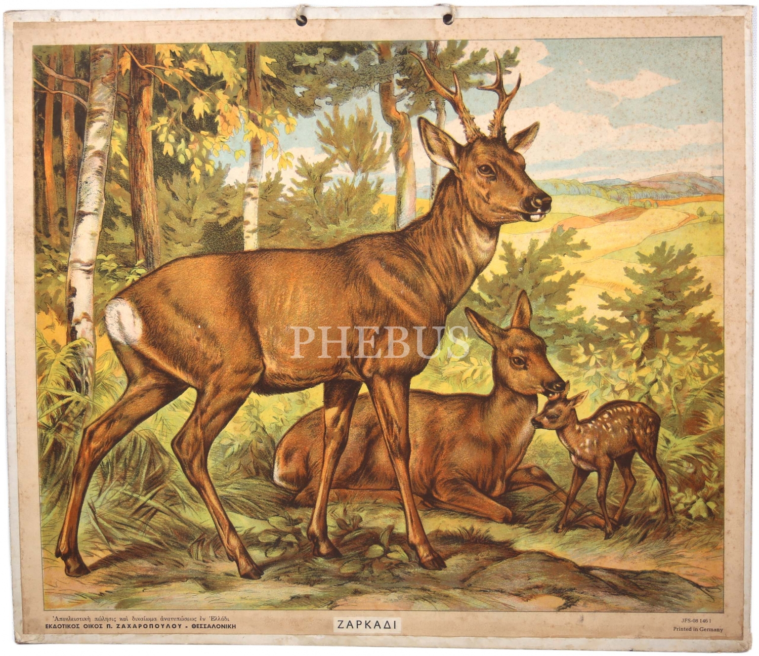 Kumkapı Rum Lisesi geyik tasvirli Rumca afiş, 40x35 cm