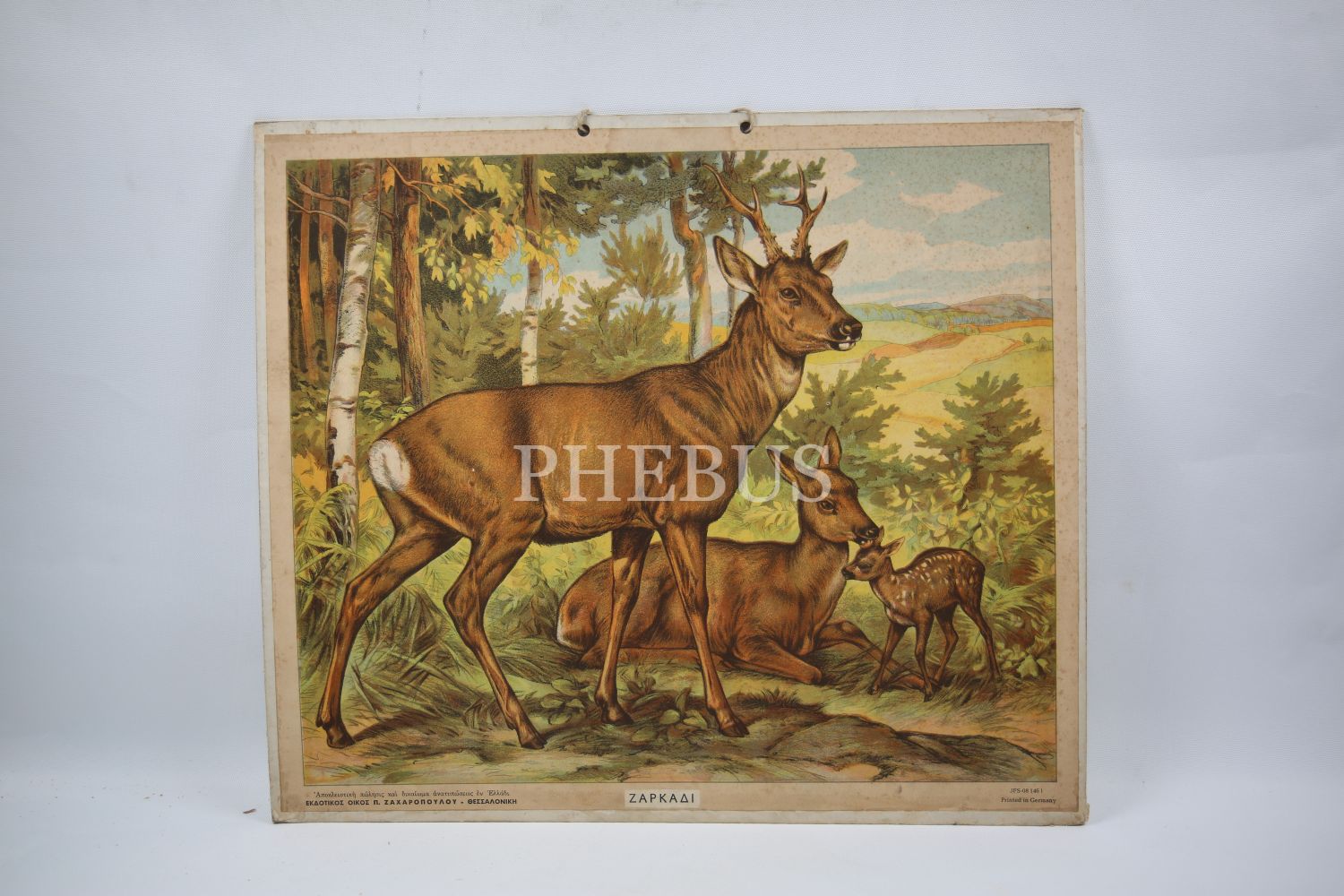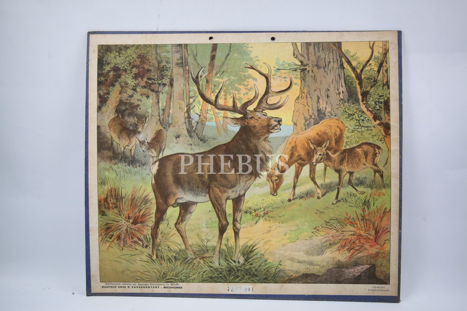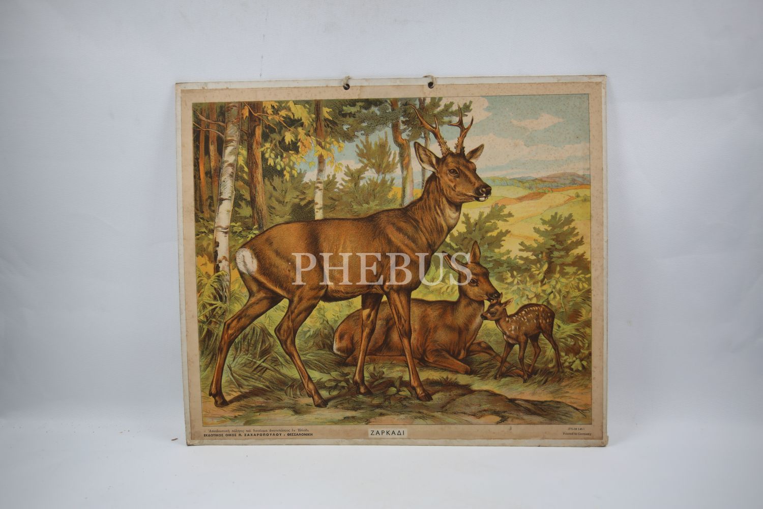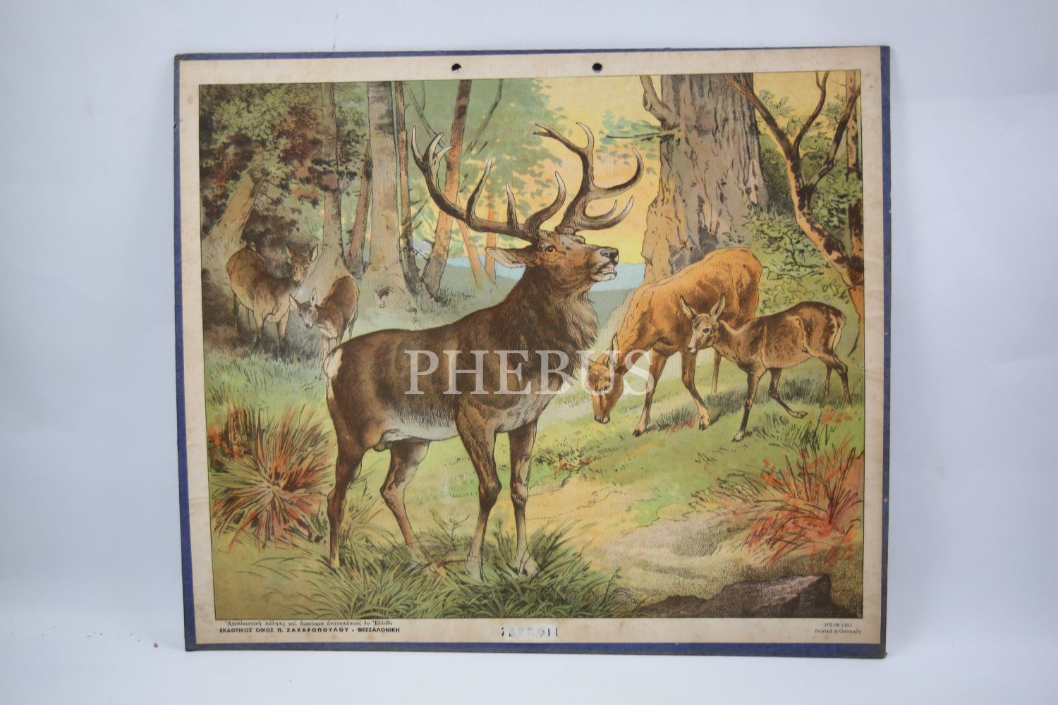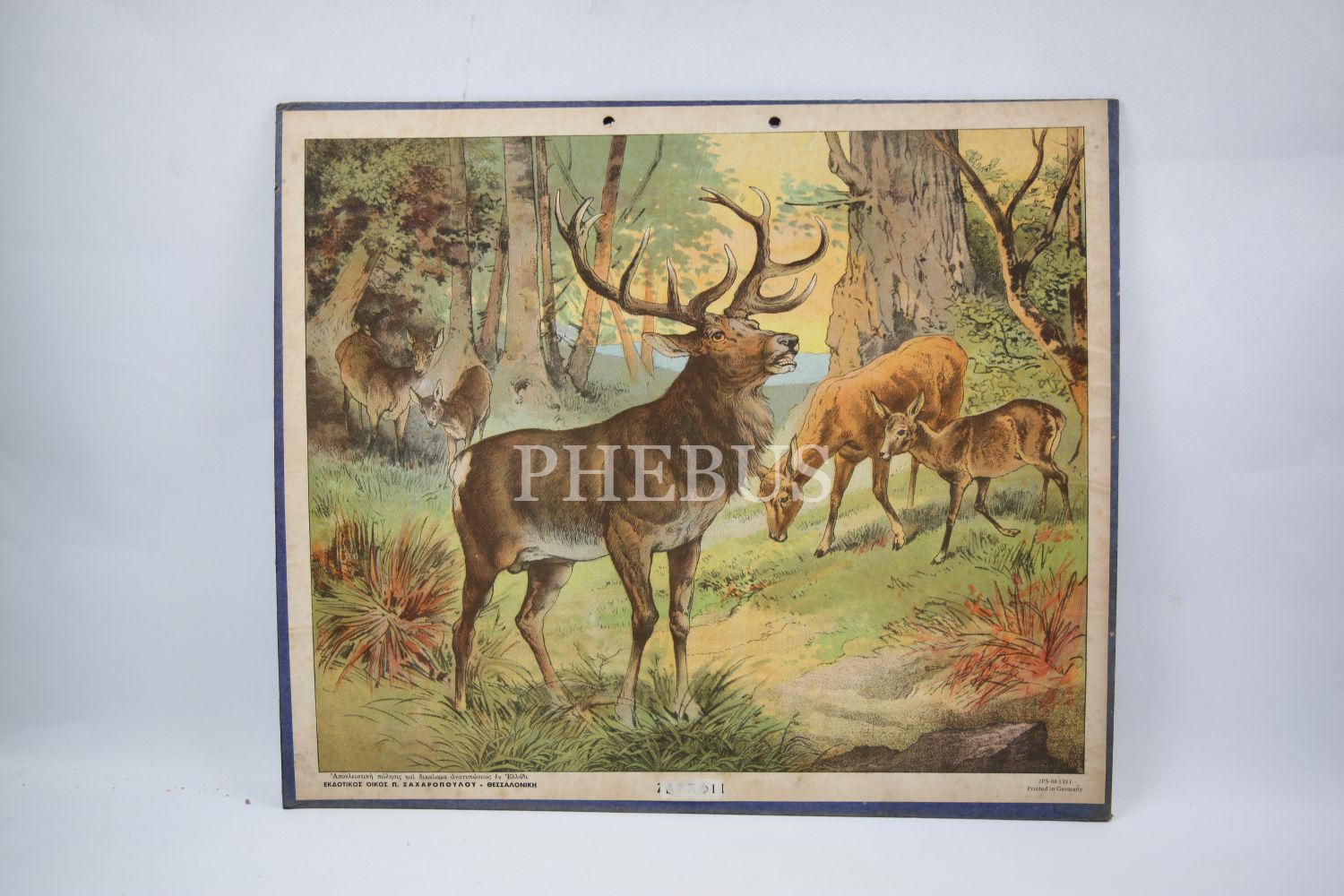 Kumkapı Rum Lisesi geyik tasvirli Rumca afiş, 40x35 cm