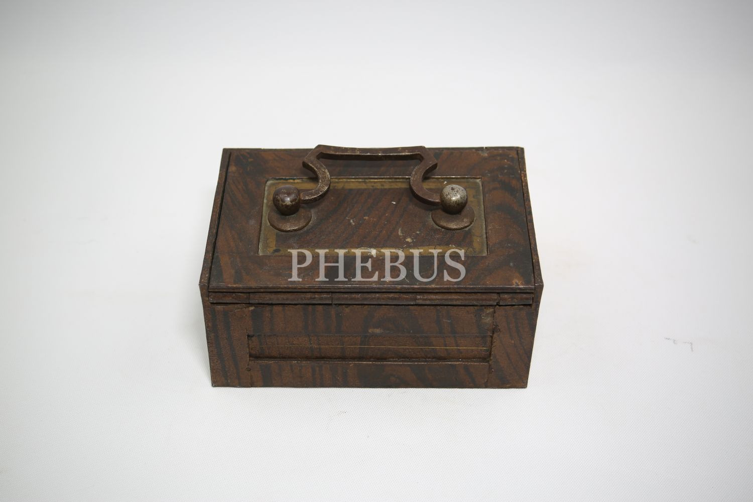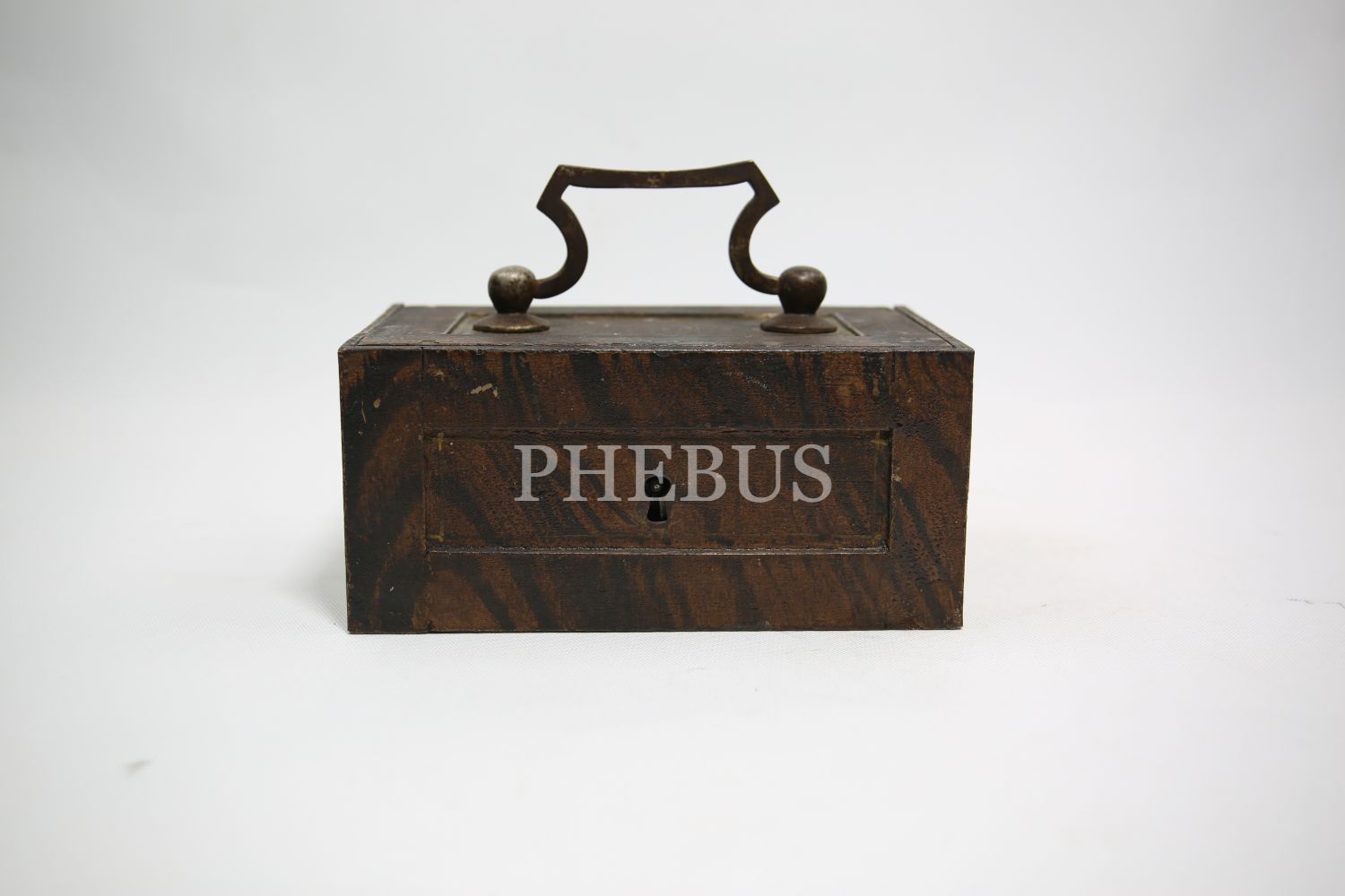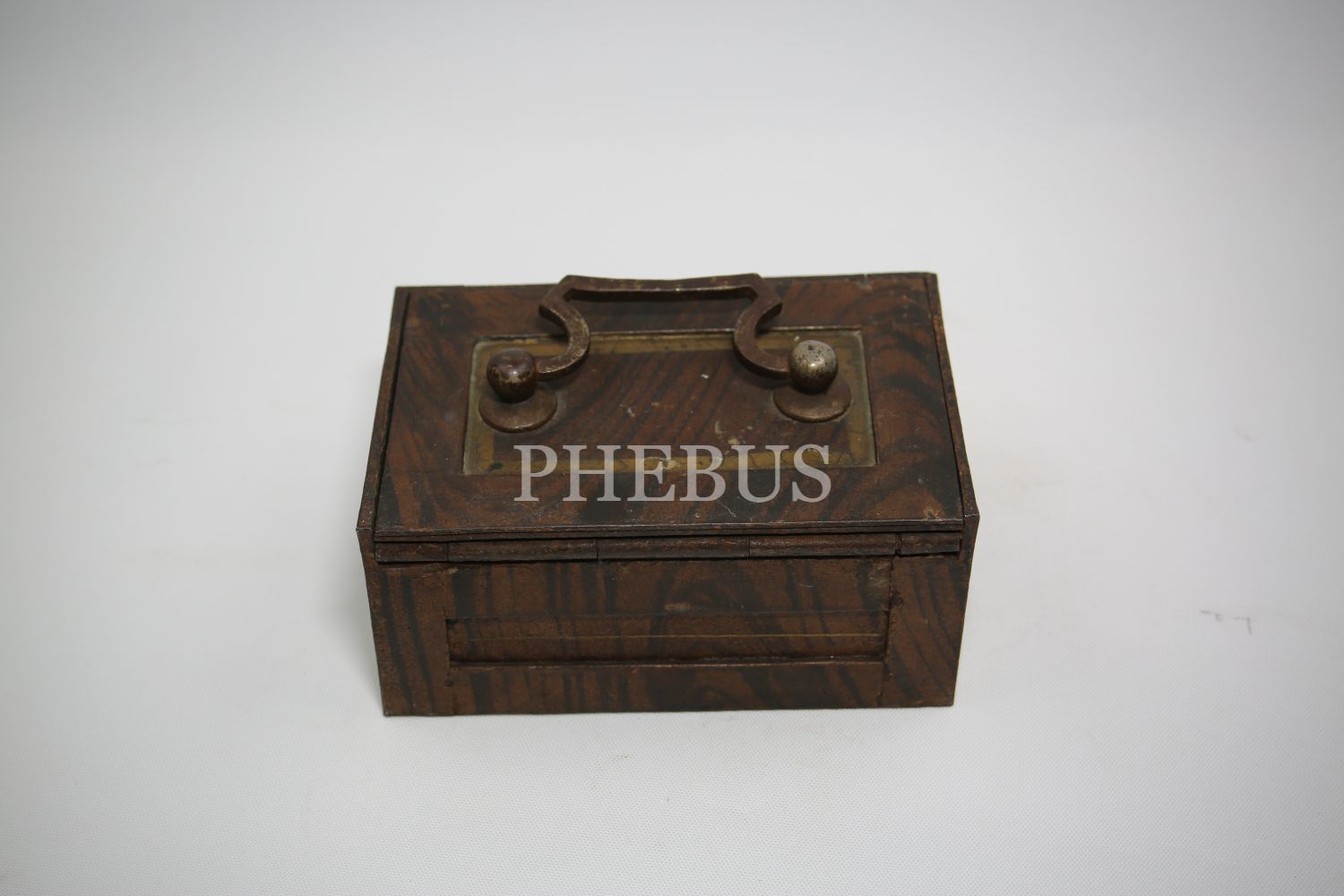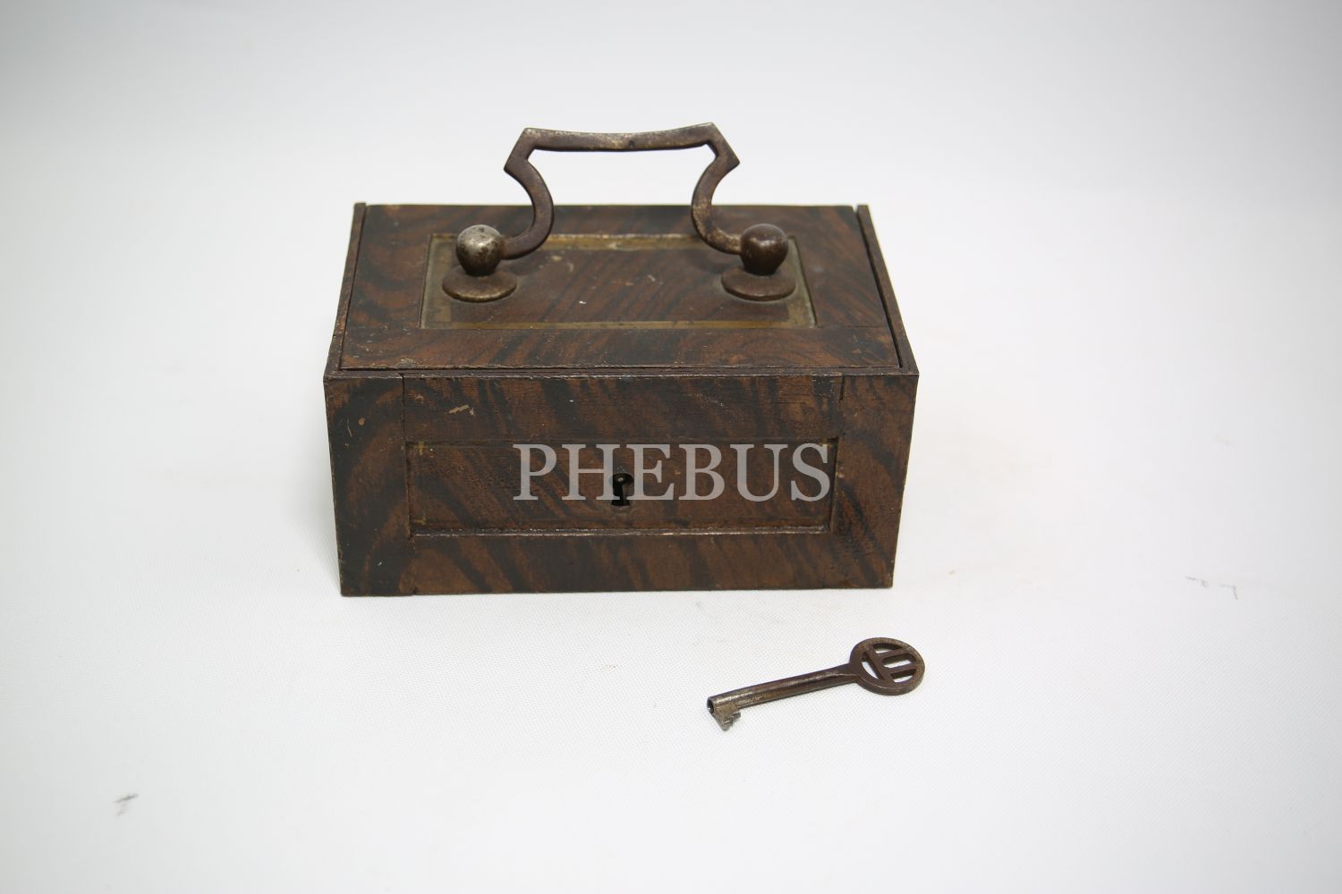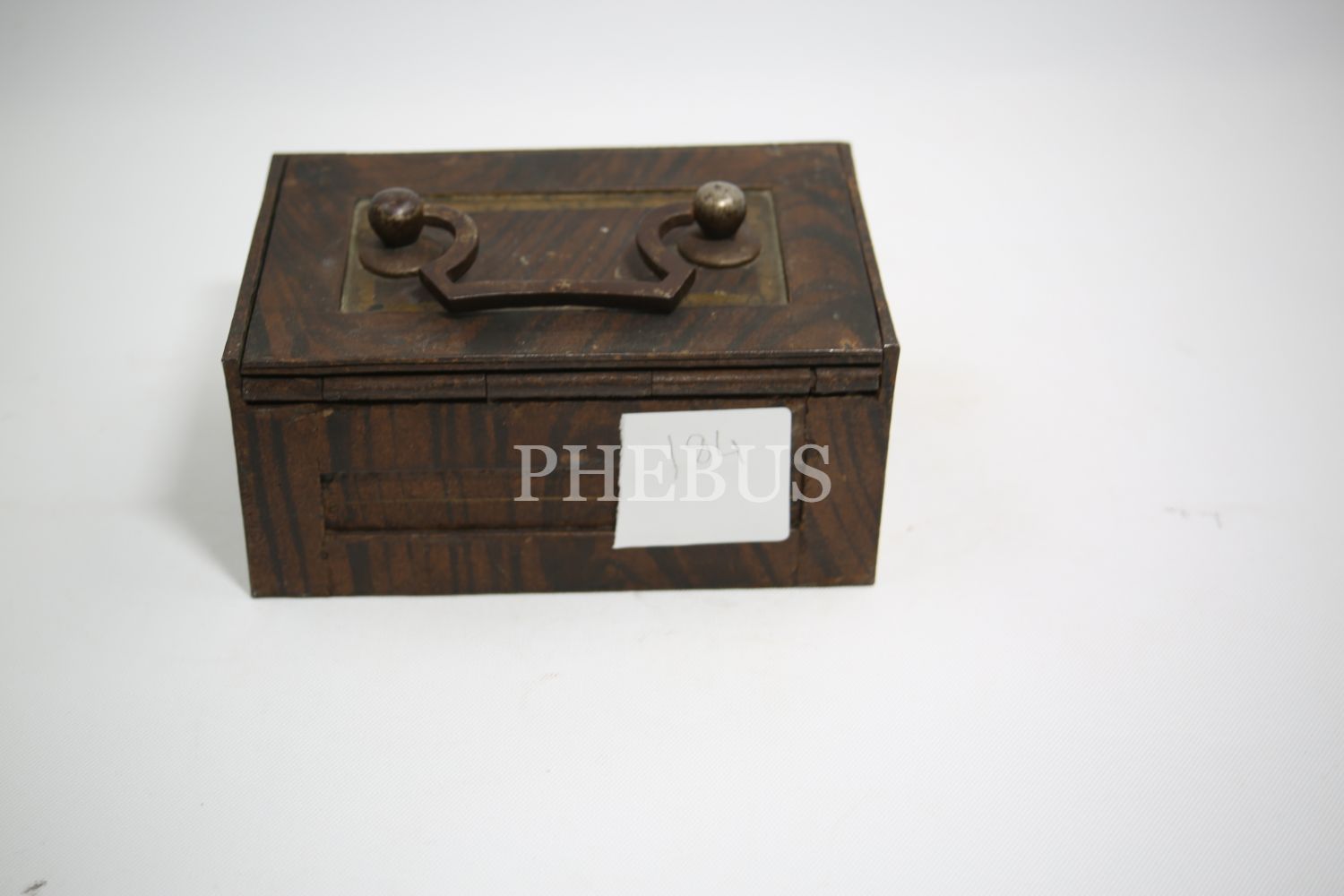 "Kilitli Ahşap masa kasası, Wildbad Viyana üretim, ithalatçı Ermeni ""Krikor Makoulian Constantinople"" etiketli, Stamboul [İstanbul], 15x10x8 cm"