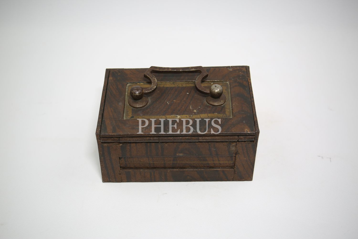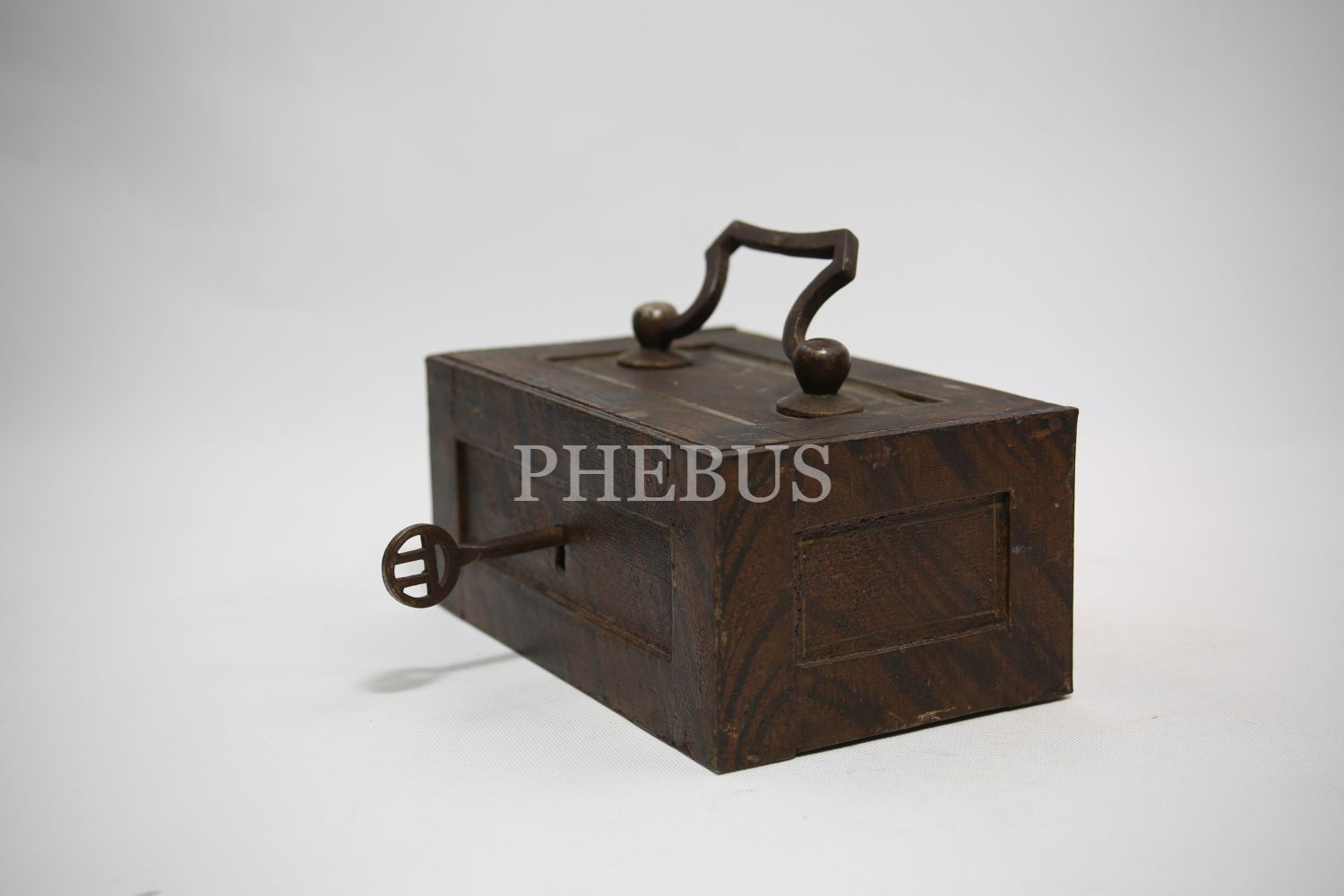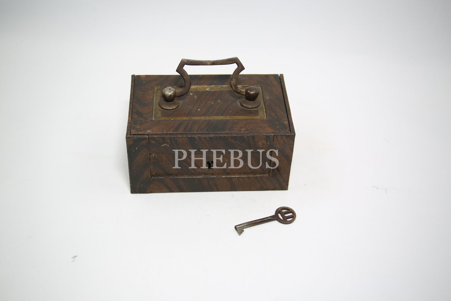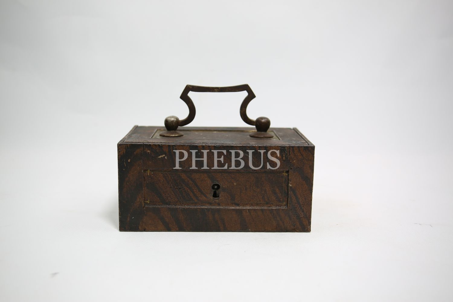 "Kilitli Ahşap masa kasası, Wildbad Viyana üretim, ithalatçı Ermeni ""Krikor Makoulian Constantinople"" etiketli, Stamboul [İstanbul], 15x10x8 cm"